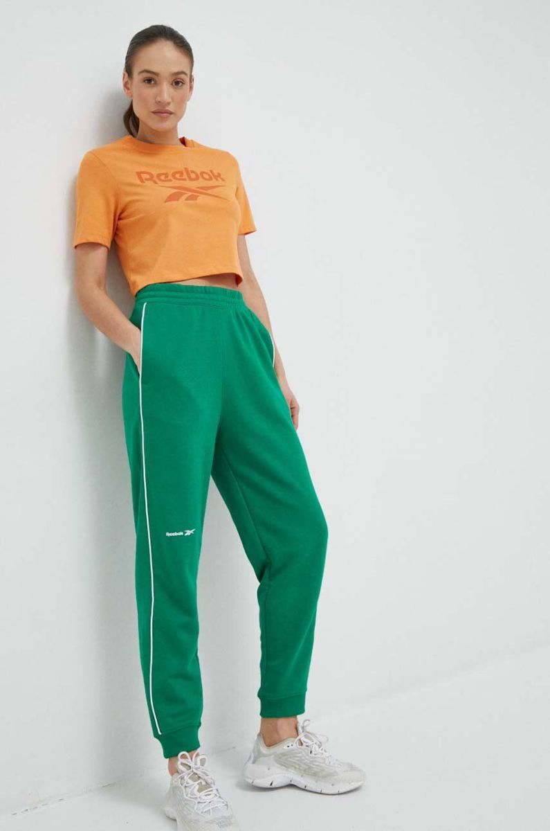 Спортивні штани Reebok колір зелений однотонні (3117531)