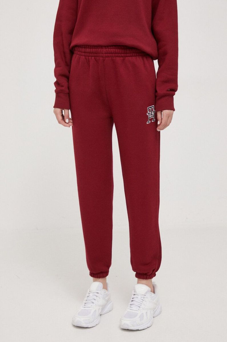 Спортивні штани Tommy Hilfiger колір бордовий з аплікацією