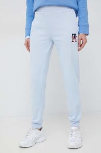 Спортивні штани Tommy Hilfiger жіночі з аплікацією колір блакитний