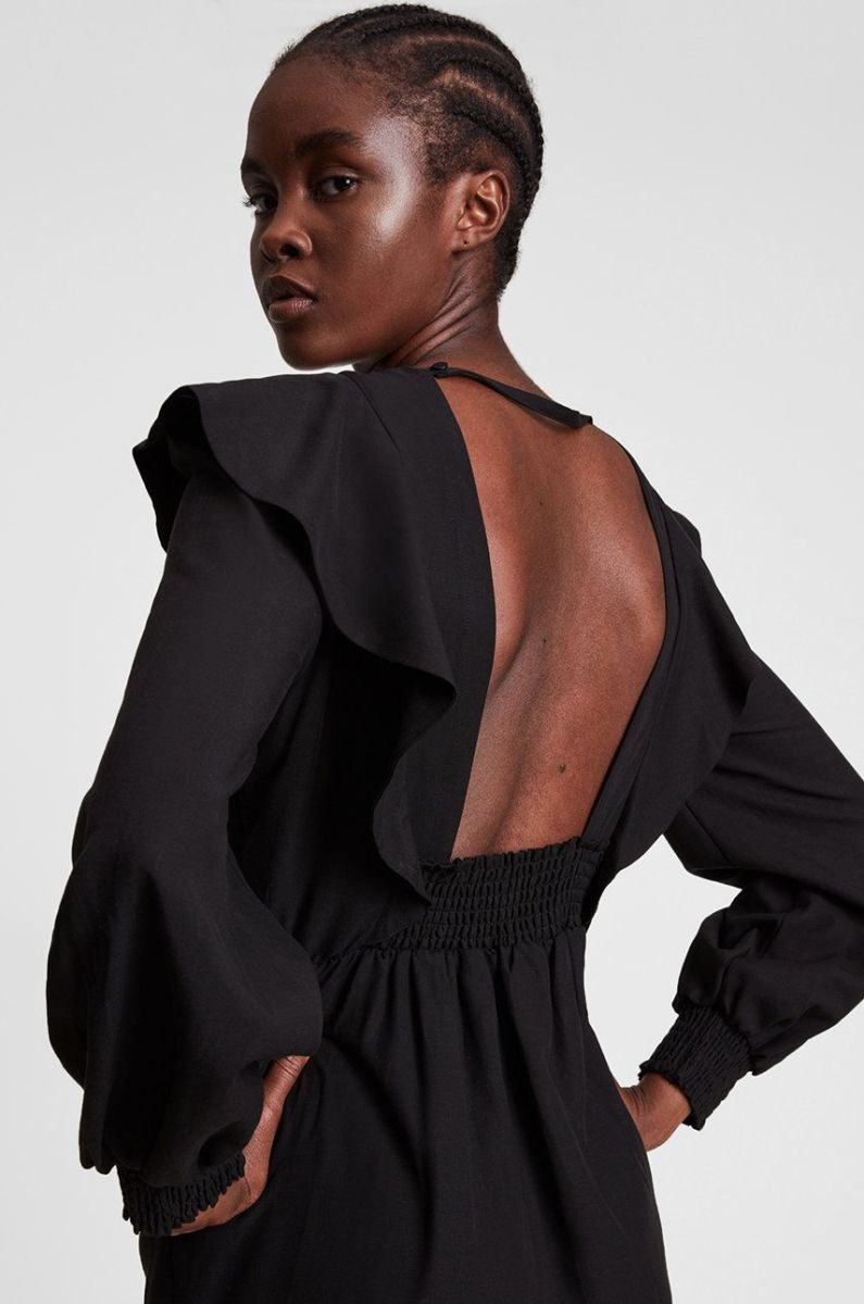 Сукня із колекції AllSaints. Пряма модель виготовлена із узорної тканини.
