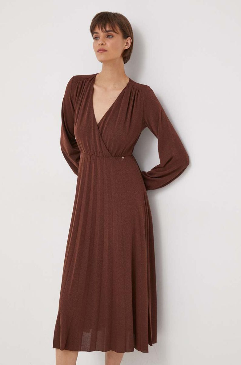Сукня Artigli колір коричневий midi розкльошена (3676507)