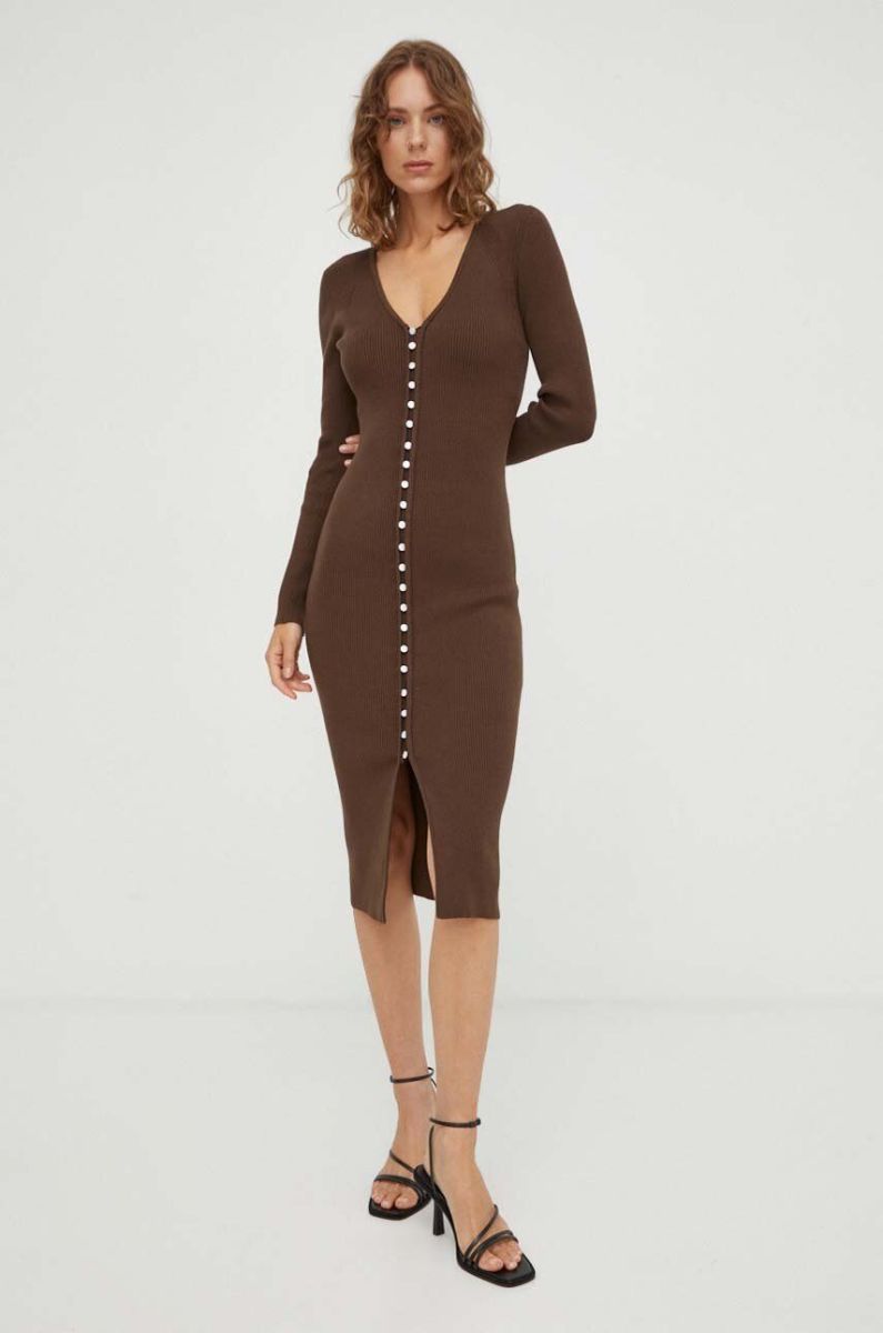 Сукня BA&SH колір коричневий midi облягаюча