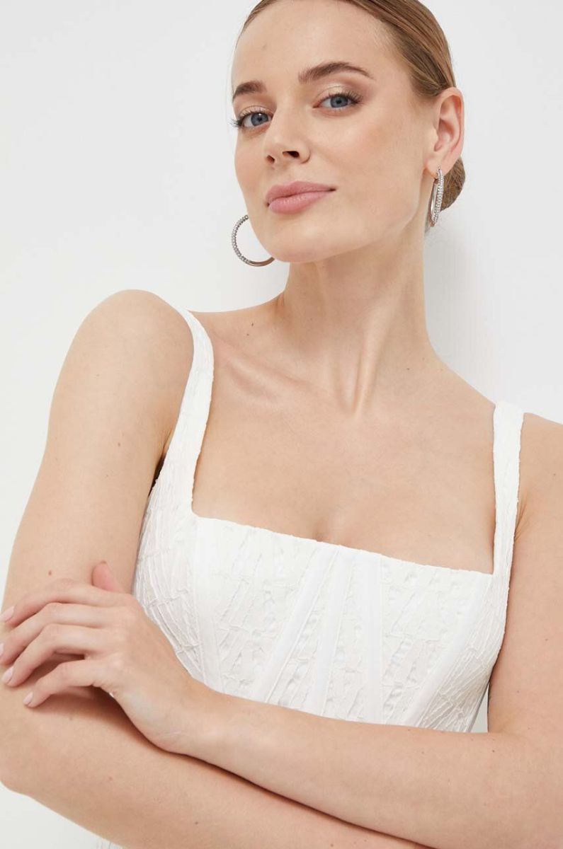 Сукня Bardot колір бежевий mini розкльошена