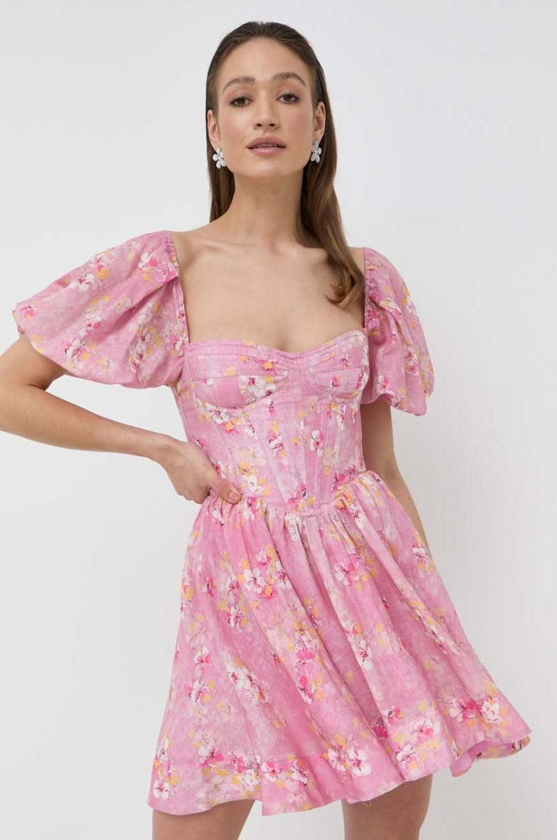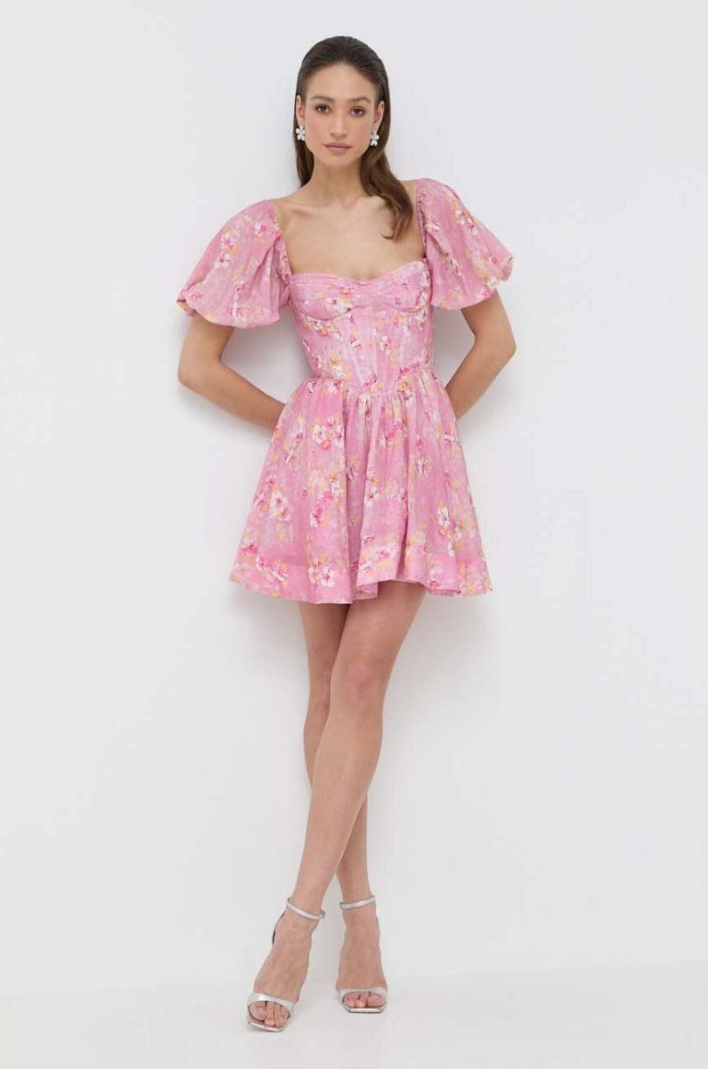 Сукня Bardot колір рожевий mini розкльошена (3212921)