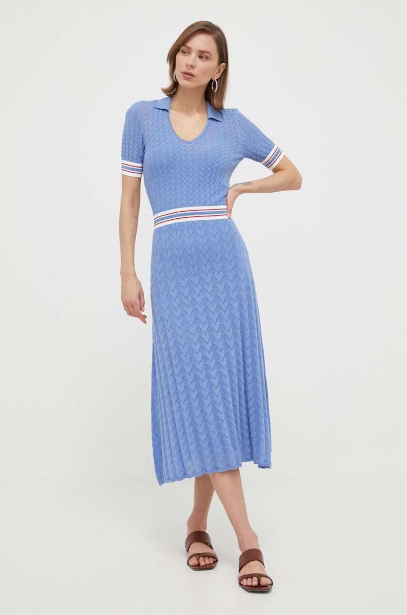 Сукня BOSS maxi розкльошена колір блакитний (3242000)