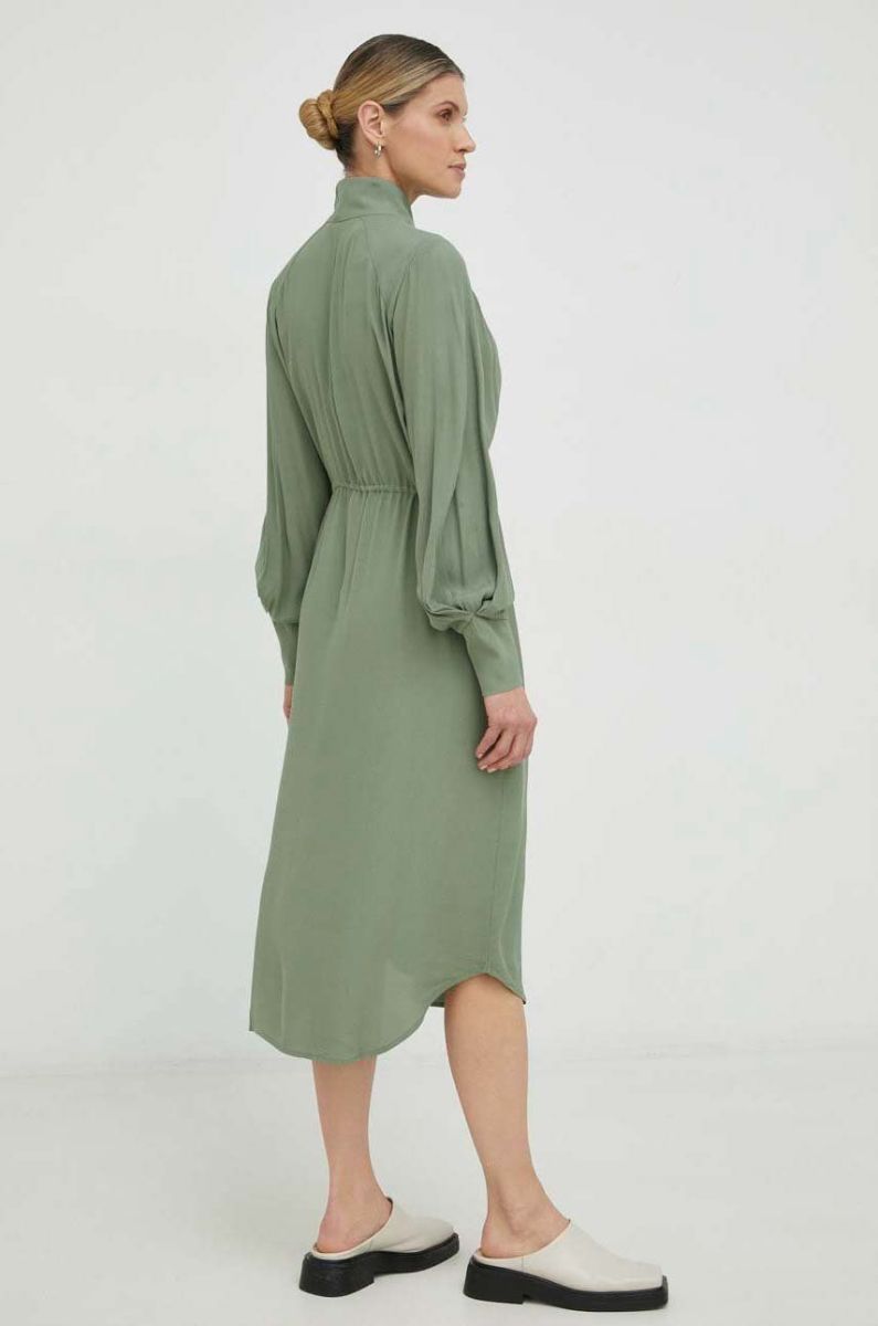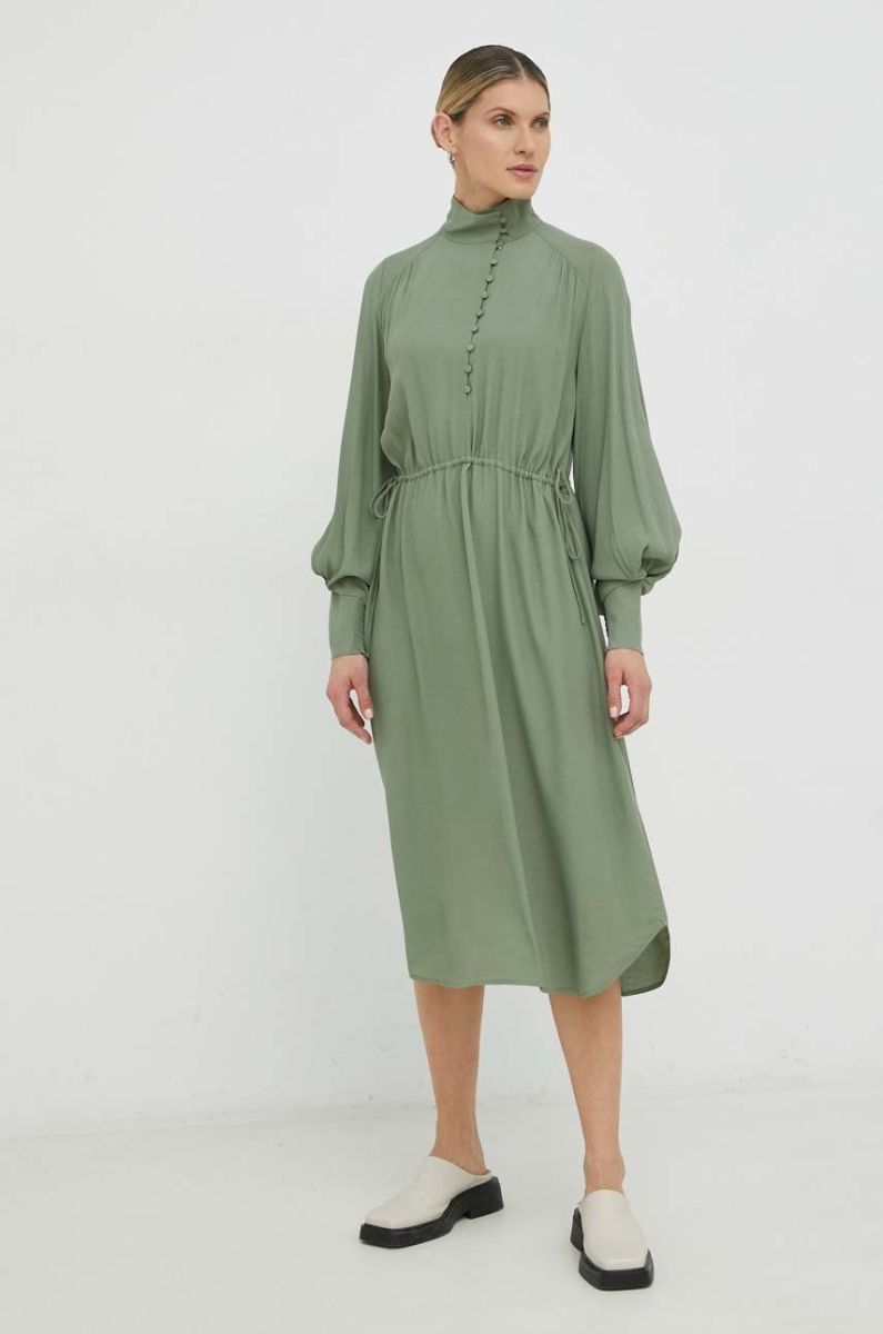 Сукня Bruuns Bazaar Lilli Lyra колір зелений midi розкльошена