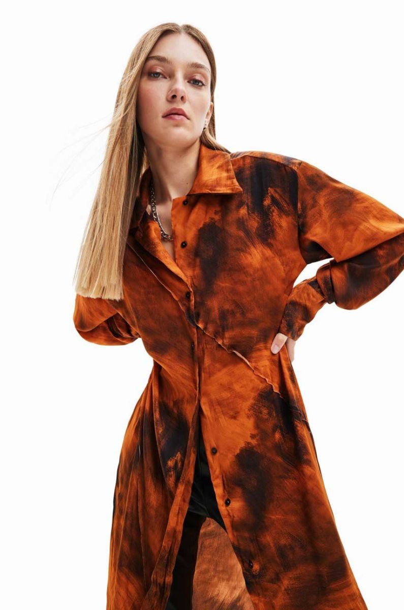 Сукня Desigual 23WWVWAG WOMAN WOVEN DRESS LONG SLEEVE колір помаранчевий midi пряма