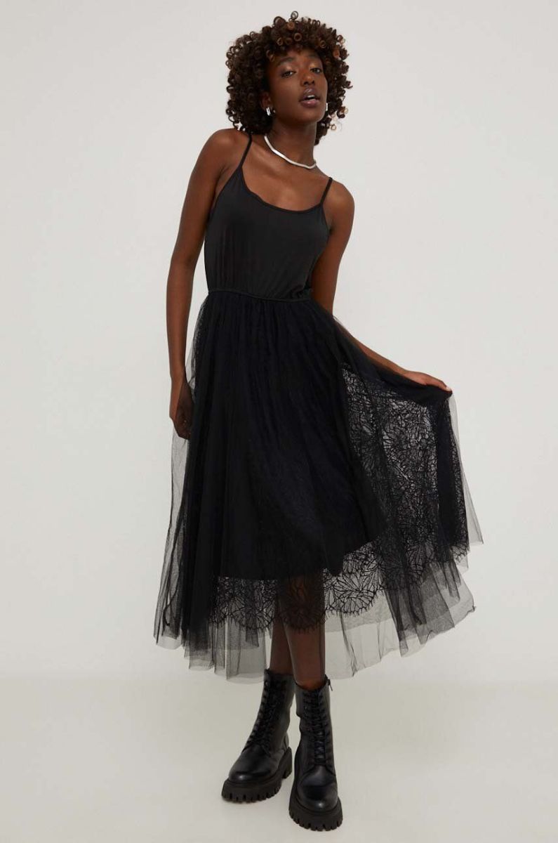 Сукня і светр Answear Lab колір чорний midi розкльошена