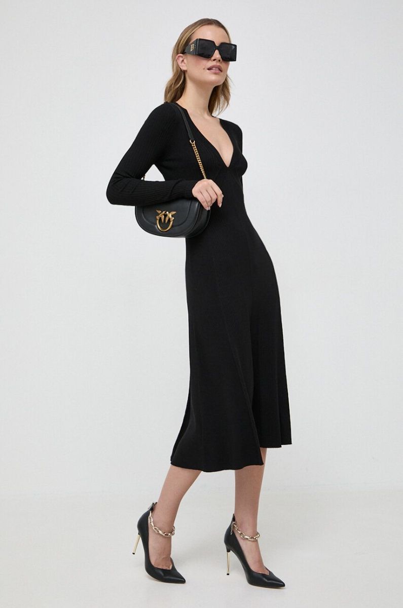 Сукня Pinko колір чорний midi розкльошена (3560201)