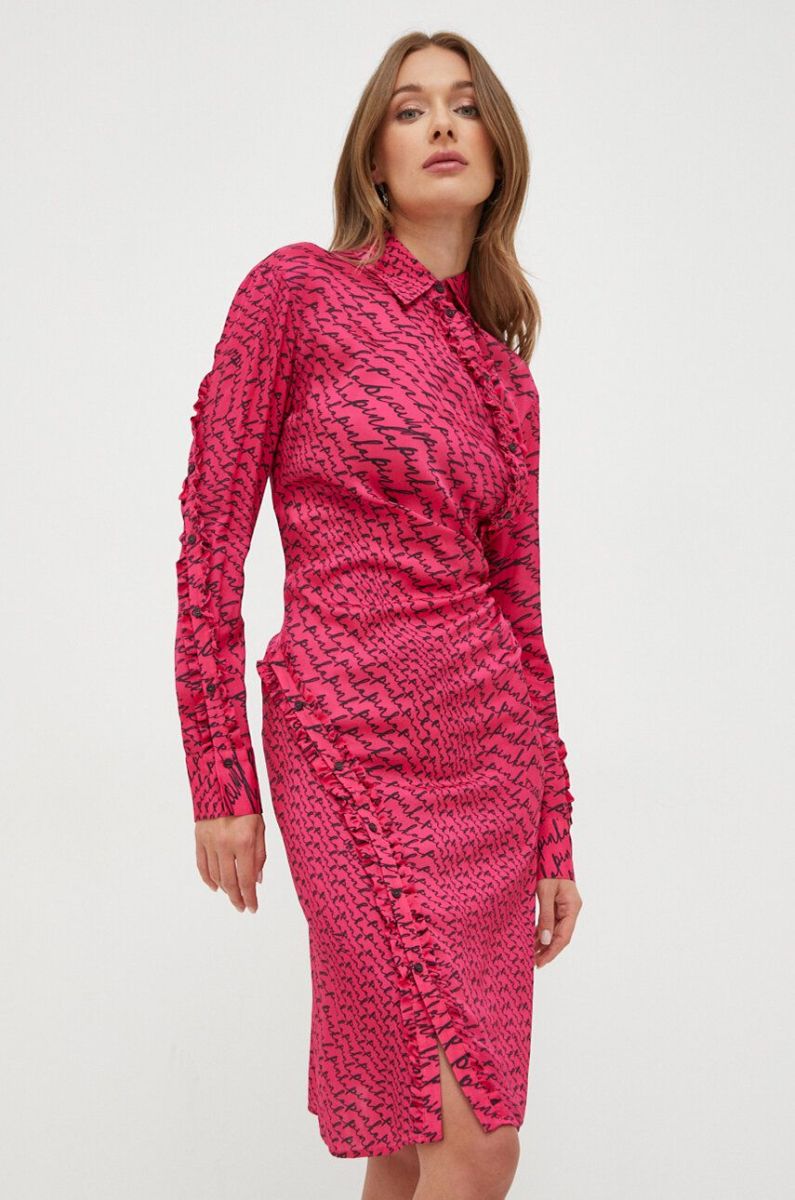 Сукня з колекції Pinko виконана із узорної тканини. Модель із дихаючого віскозного матеріалу.