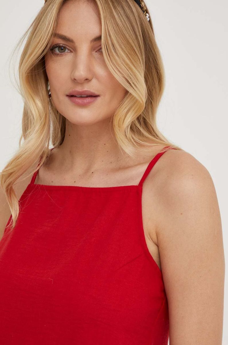 Сукня з домішкою льону Answear Lab колір червоний mini розкльошена