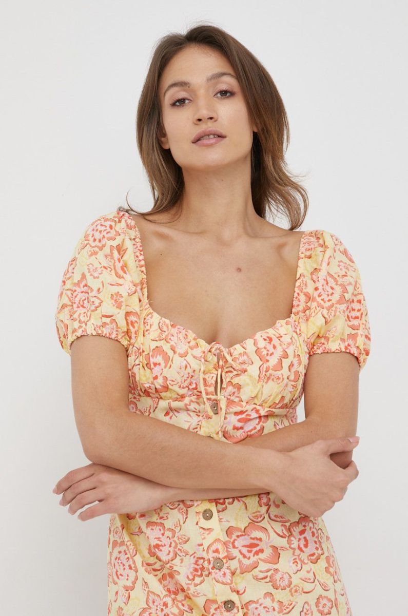 Сукня з домішкою льону Billabong Billabong X Wrangler колір бежевий mini пряма