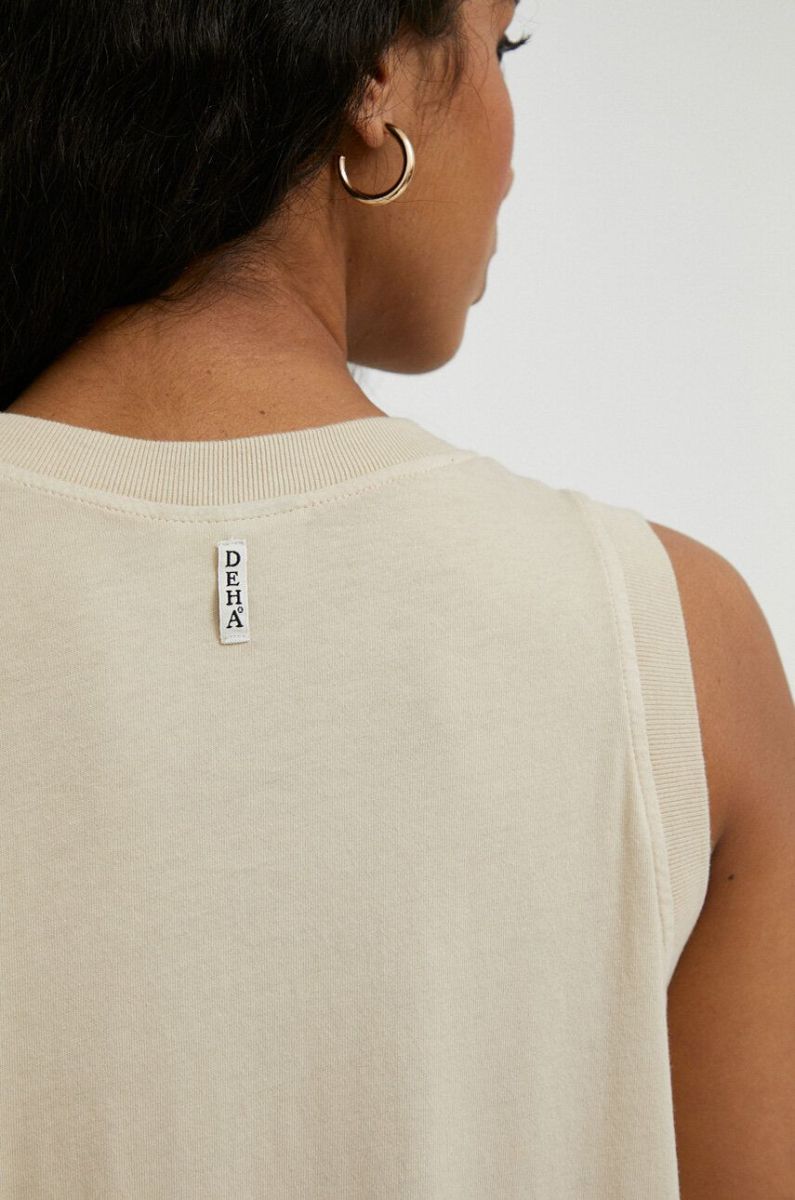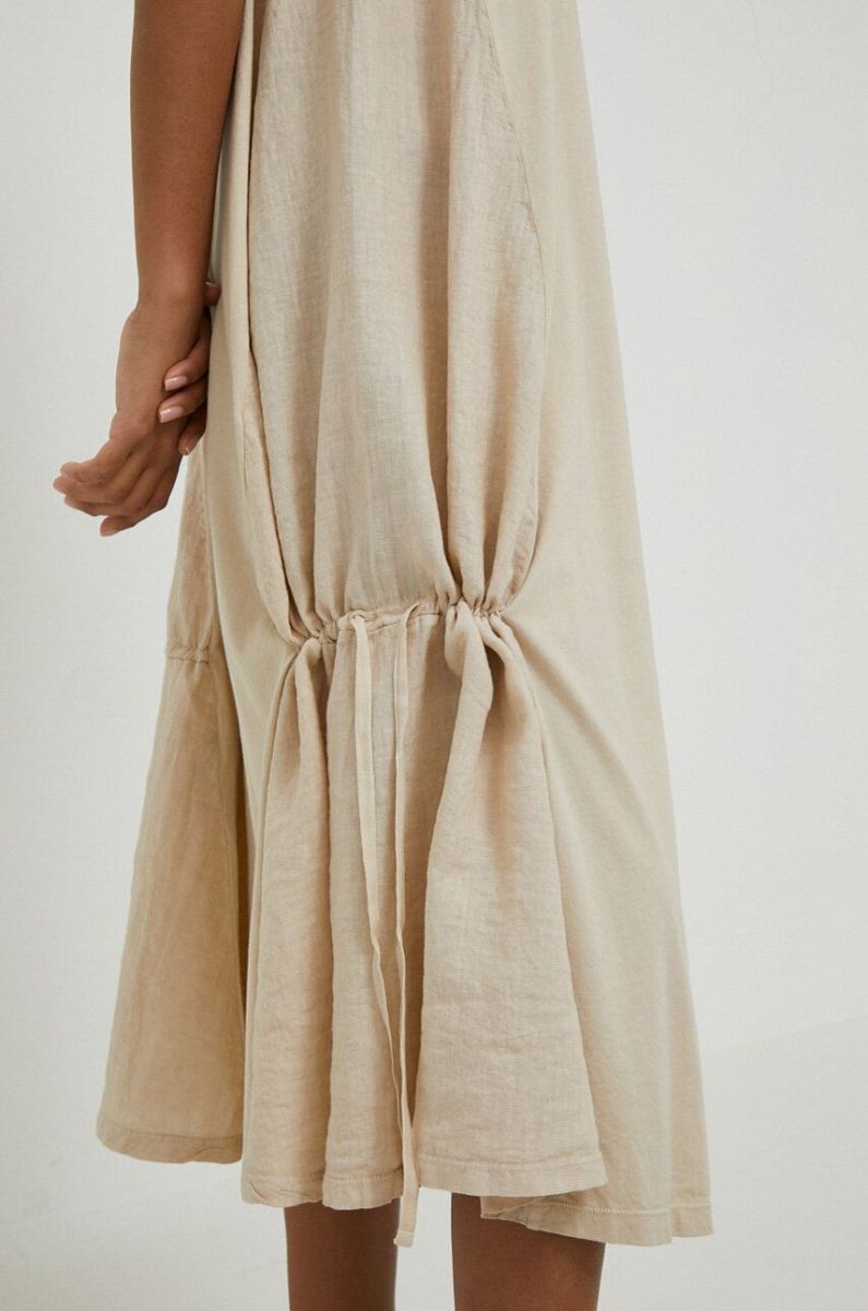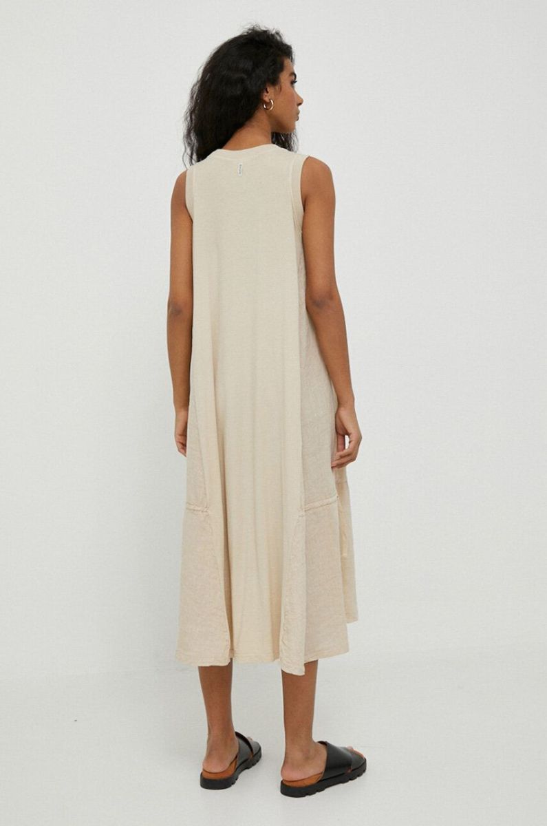 Сукня з домішкою льону Deha колір бежевий midi розкльошена