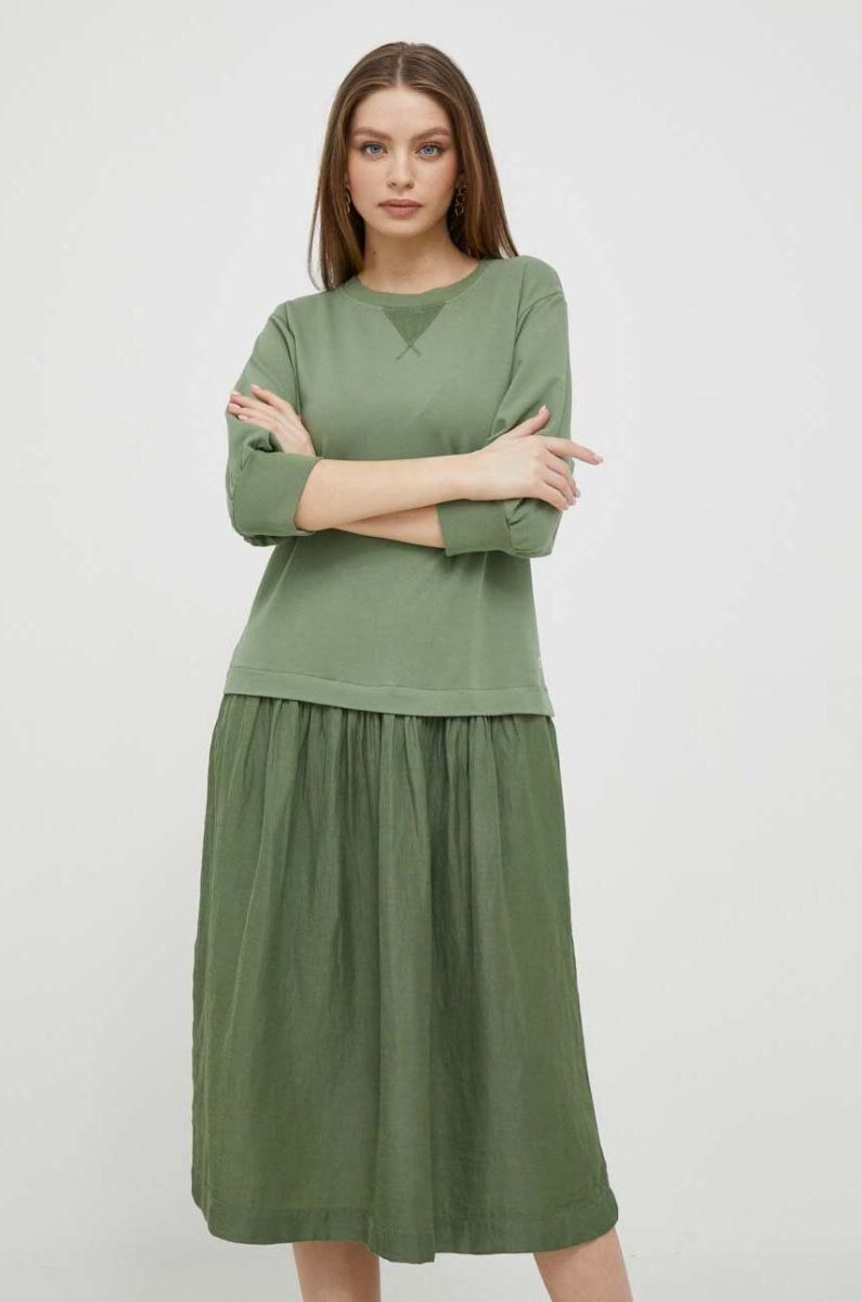 Сукня з домішкою льону Deha колір зелений mini розкльошена