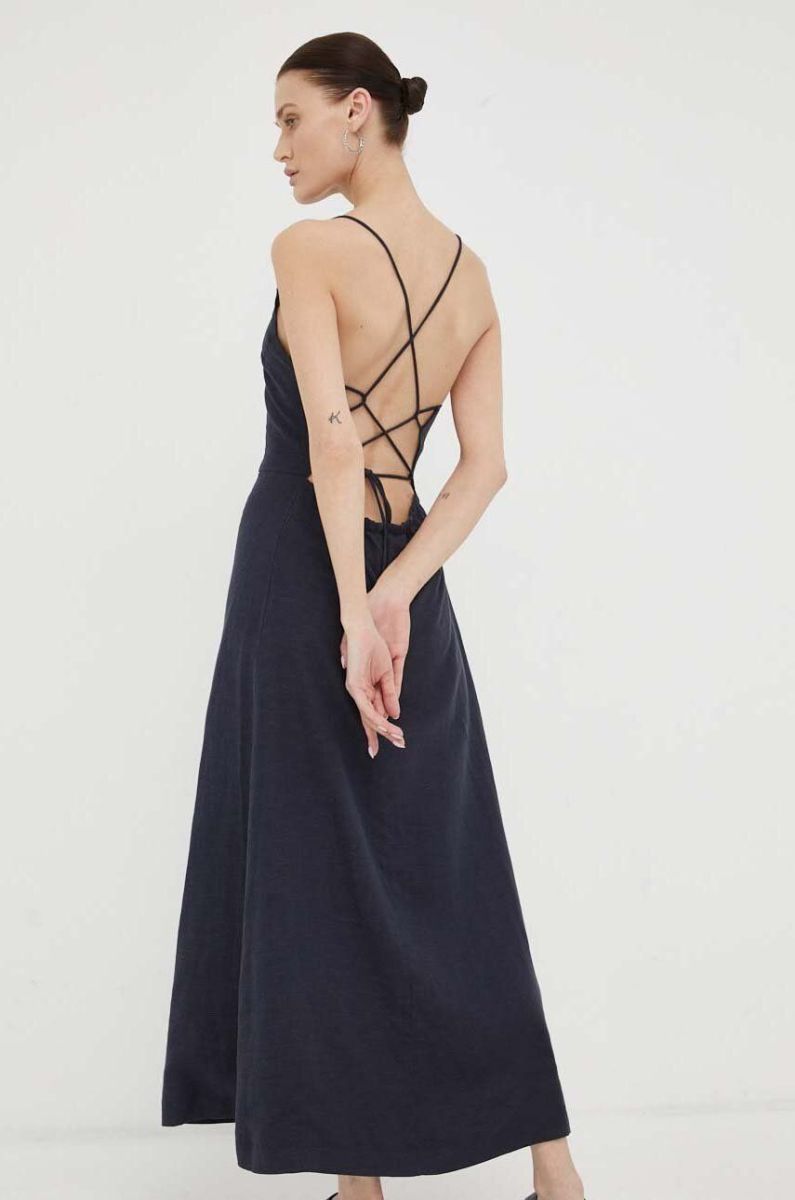 Сукня з домішкою льону Gestuz колір синій maxi розкльошена