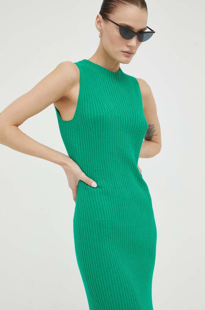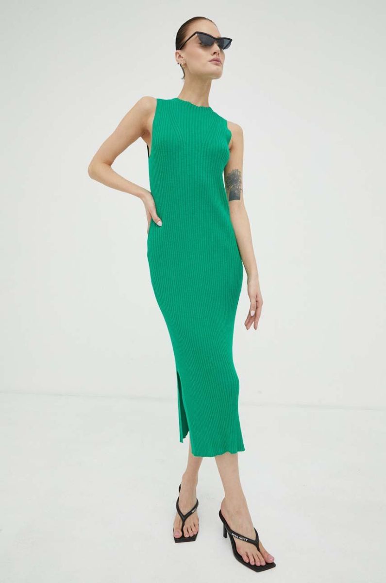 Сукня з домішкою льону Marc O'Polo колір зелений maxi облягаюча
