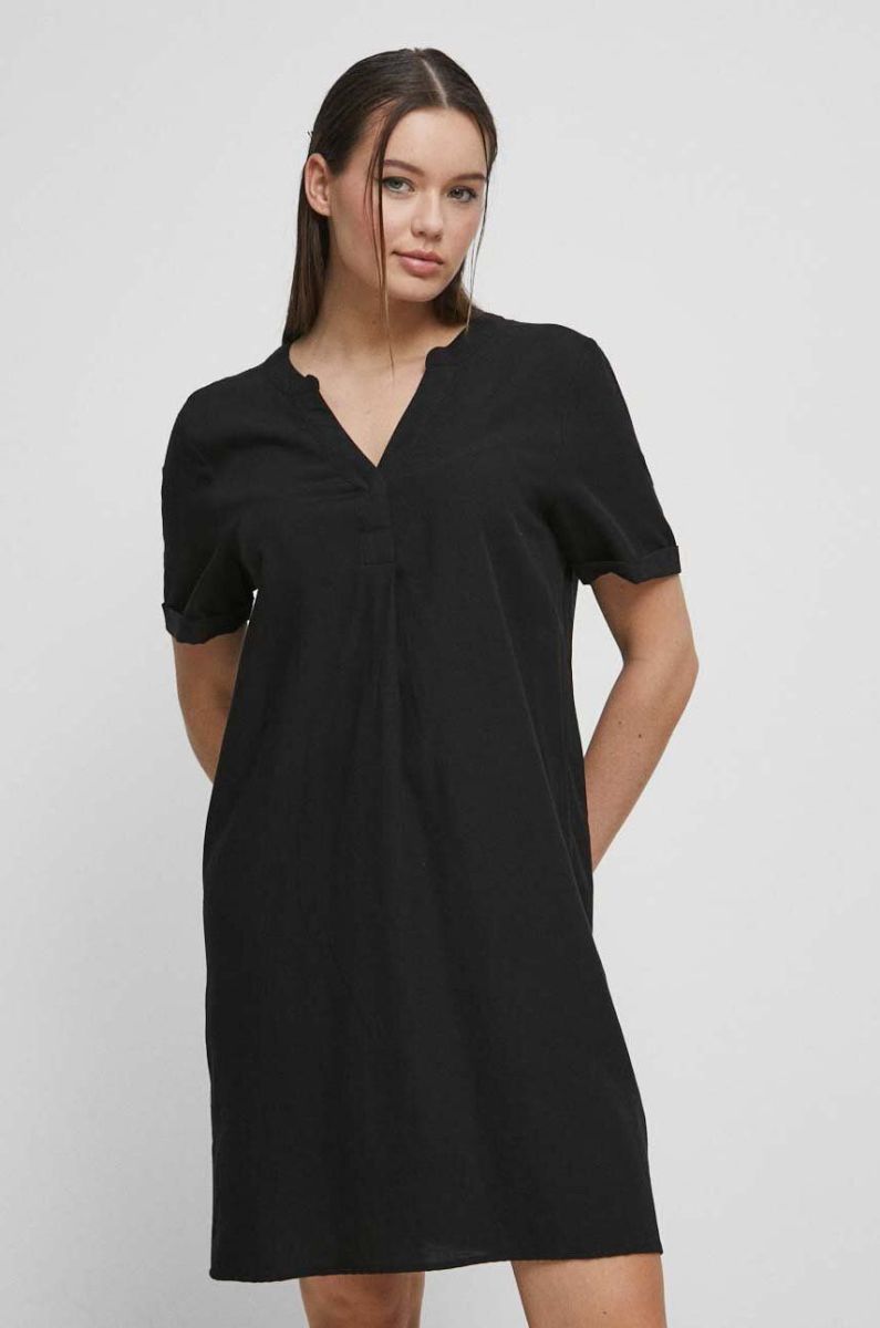 Сукня з домішкою льону Medicine колір чорний midi oversize (3287660)