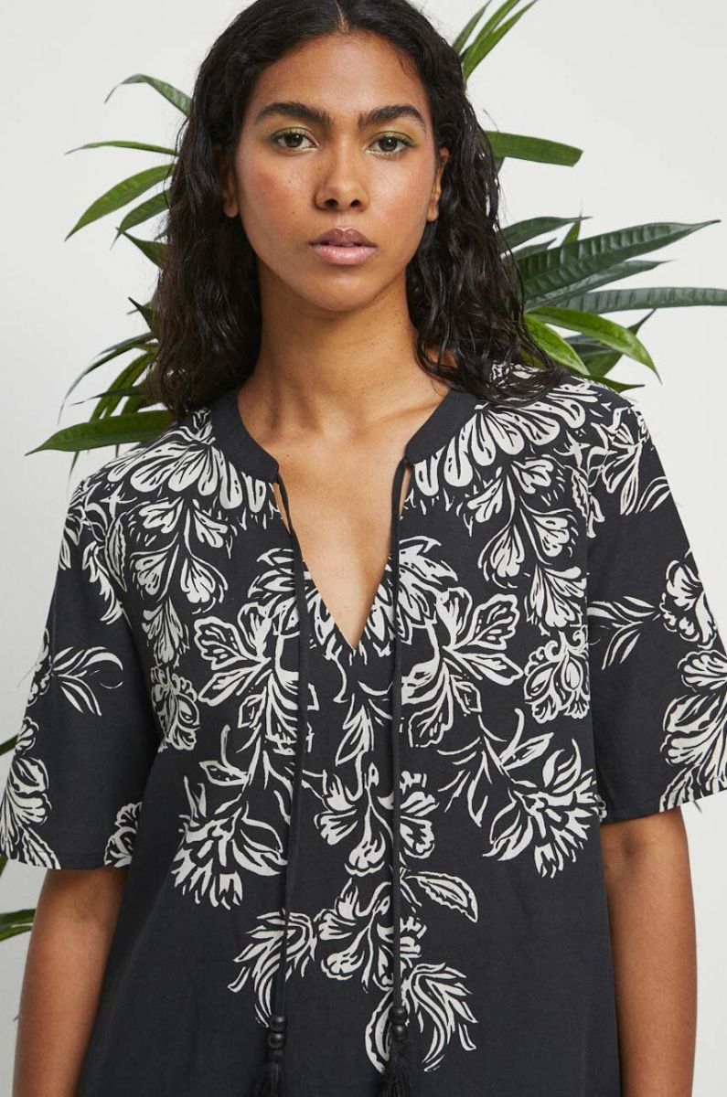 Сукня з домішкою льону Medicine колір чорний mini oversize