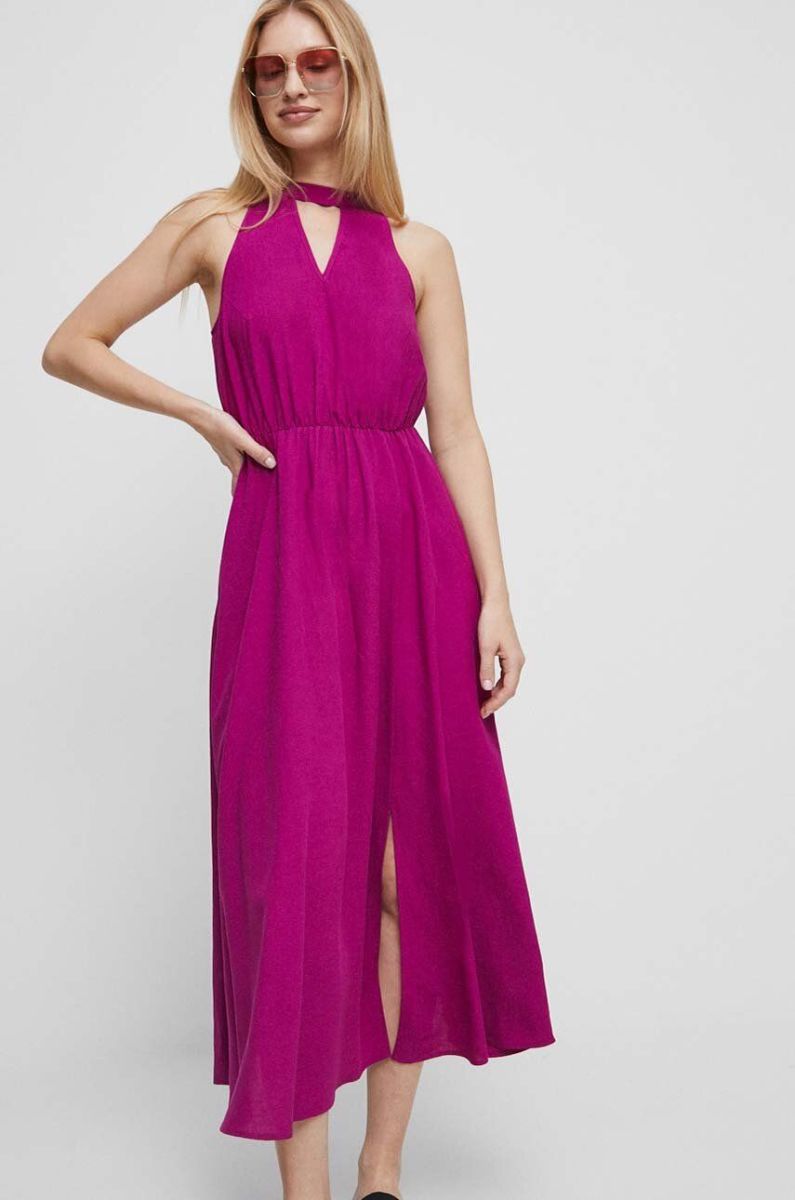 Сукня з домішкою льону Medicine колір рожевий midi розкльошена
