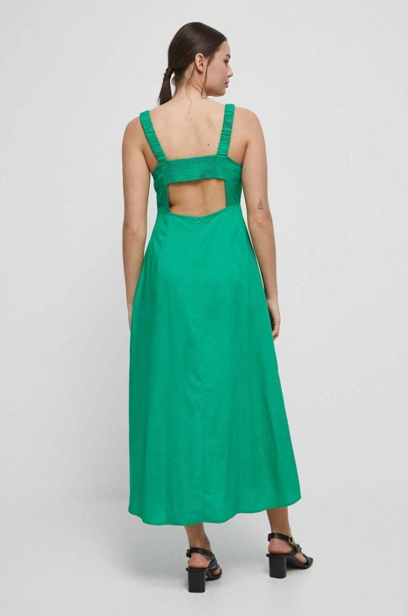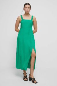 Сукня з домішкою льону Medicine колір зелений maxi розкльошена