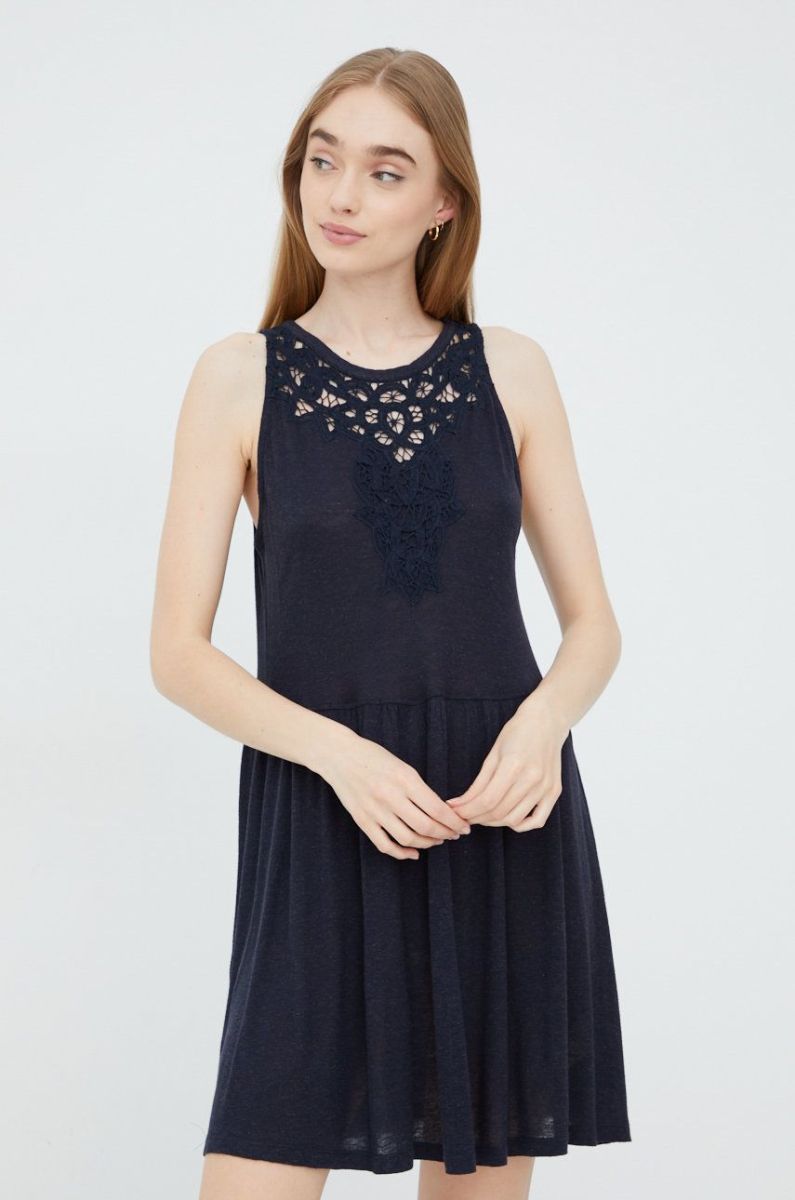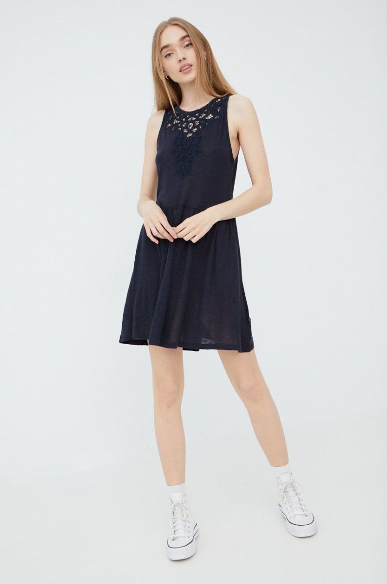 Сукня з домішкою льону Superdry колір синій mini розкльошена