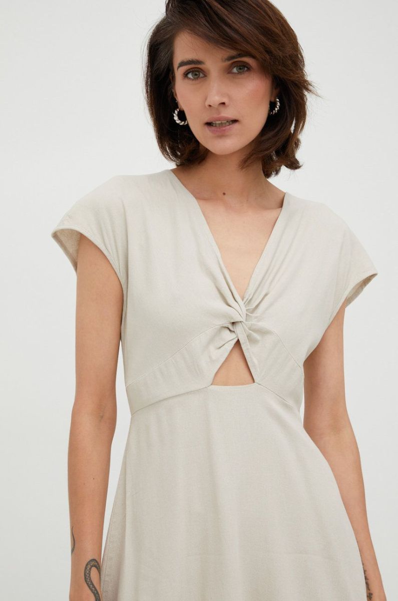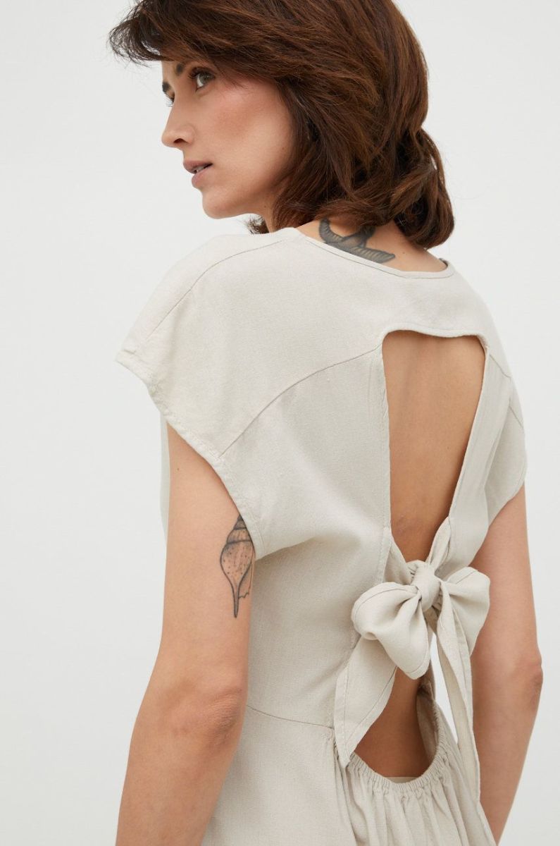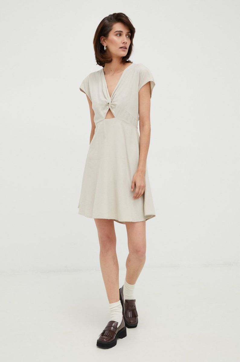 Сукня з домішкою льону Vero Moda колір бежевий mini розкльошена