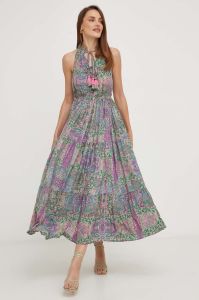 Сукня з домішкою шовку Answear Lab колір зелений maxi розкльошена