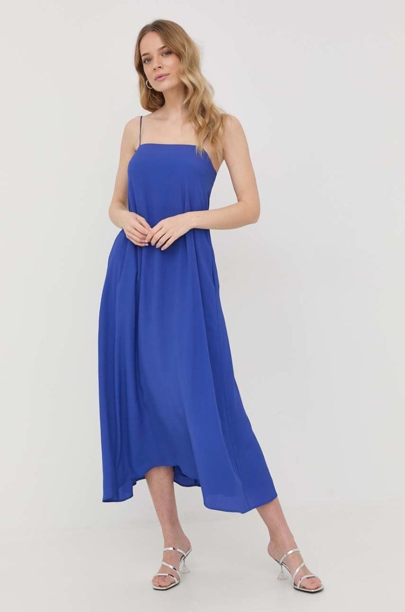Сукня з домішкою шовку Liviana Conti midi розкльошена колір блакитний