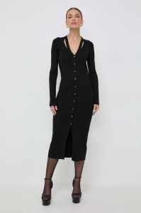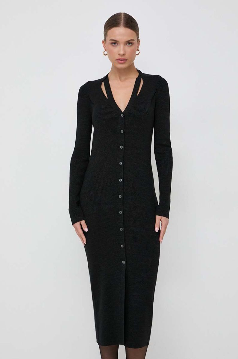Сукня з домішкою вовни BOSS колір чорний midi облягаюча
