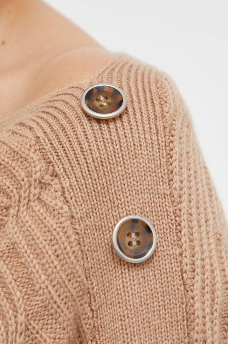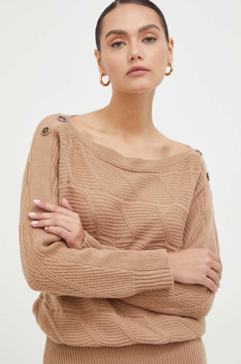 Сукня з домішкою вовни Guess колір коричневий mini облягаюча