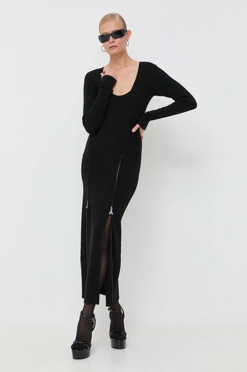 Сукня з домішкою вовни Patrizia Pepe колір чорний maxi облягаюча