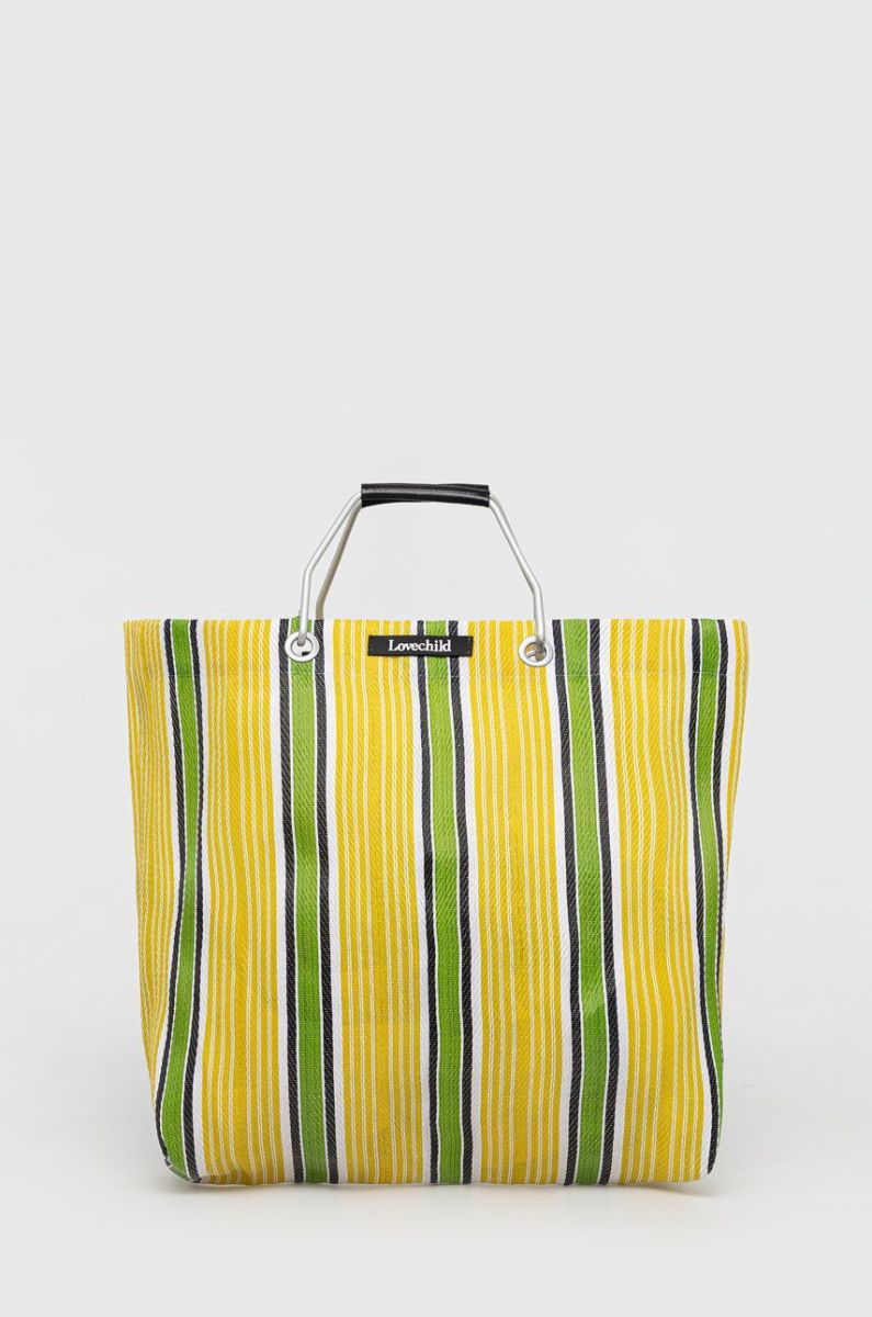 Велика сумочка із колекції Lovechild. Незастібна модель виготовлена із текстильного матеріалу.