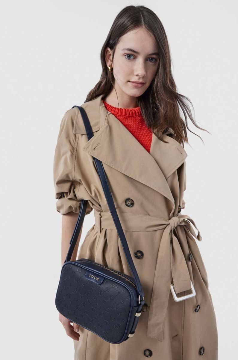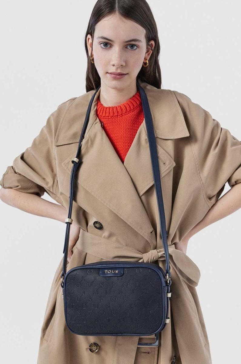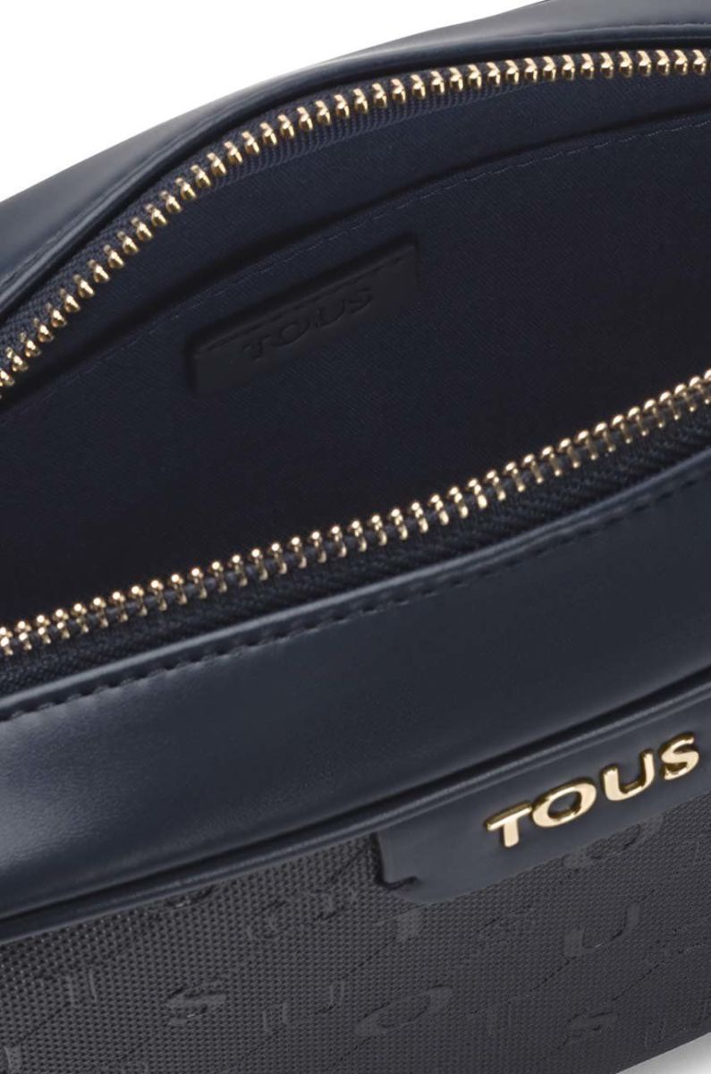 Маленька сумочка із колекції Tous. Застібна модель виготовлена із поєднання текстильної тканини і штучної шкіри.