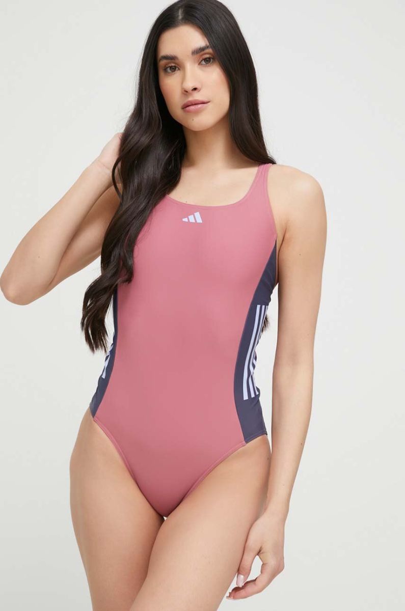 Суцільний купальник adidas Performance 3-Stripes Colorblock колір рожевий м'яка чашечка