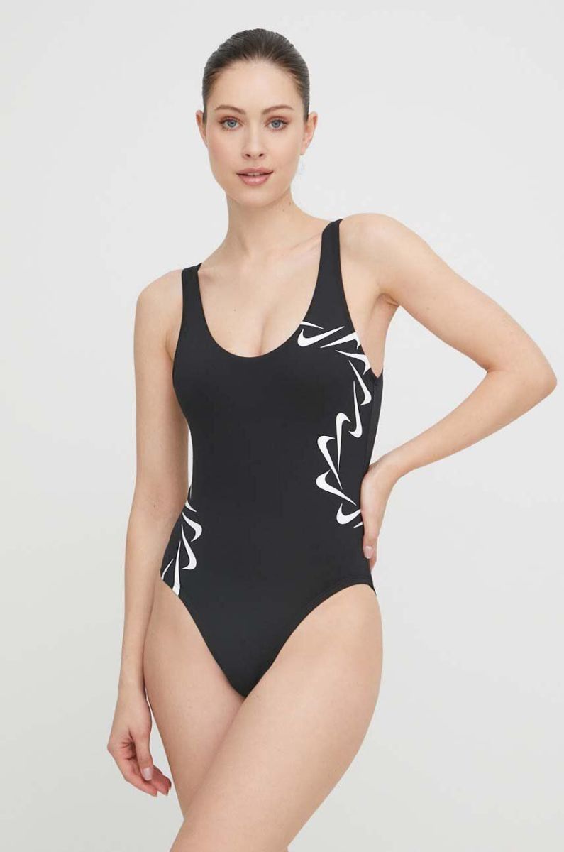 Суцільний купальник Nike Multi Logo колір чорний м'яка чашечка
