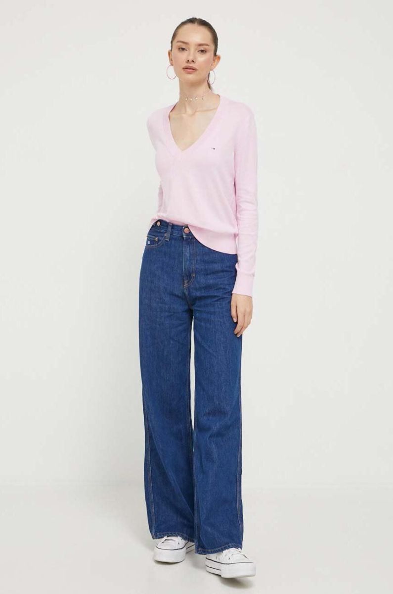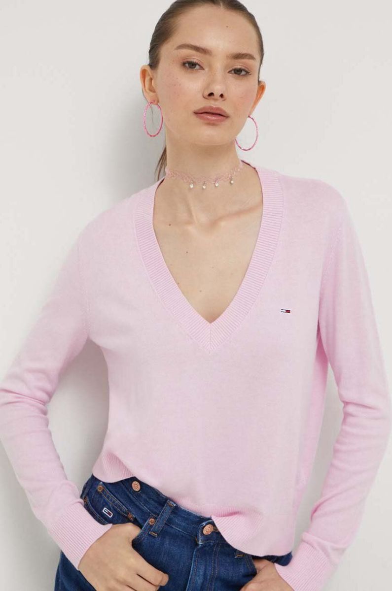 Светр Tommy Jeans жіночий колір рожевий легкий гольф (3426227)