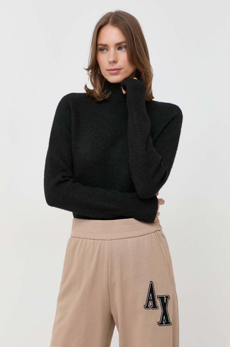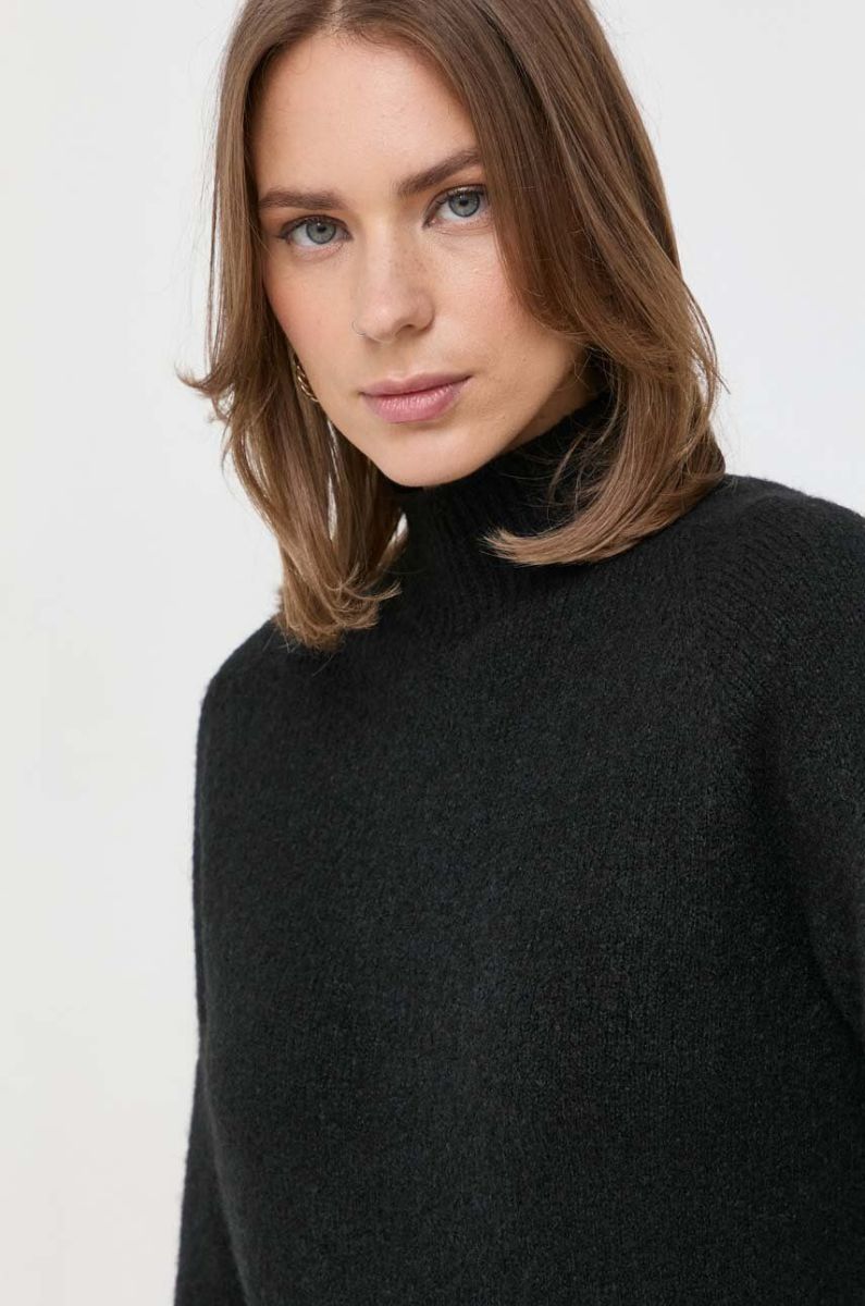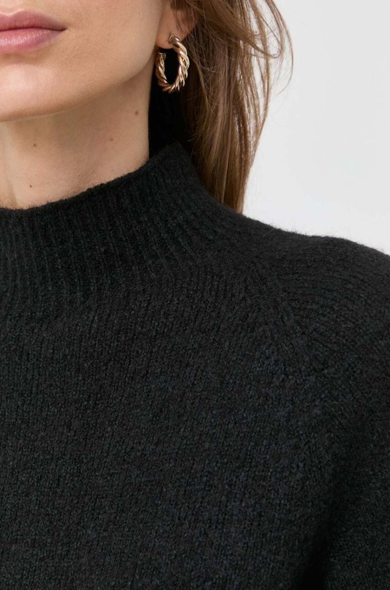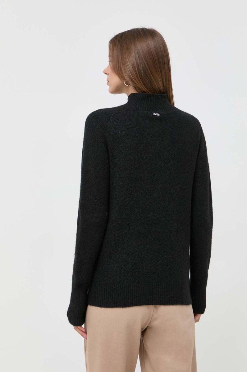 Светр з домішкою вовни BOSS жіночий колір чорний півгольф