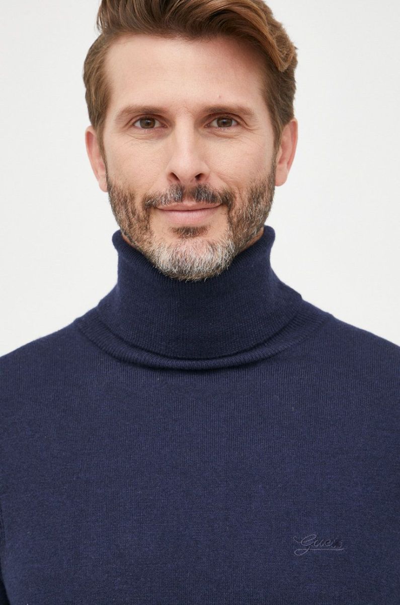 Светр з домішкою вовни Guess чоловічий колір синій легкий гольф
