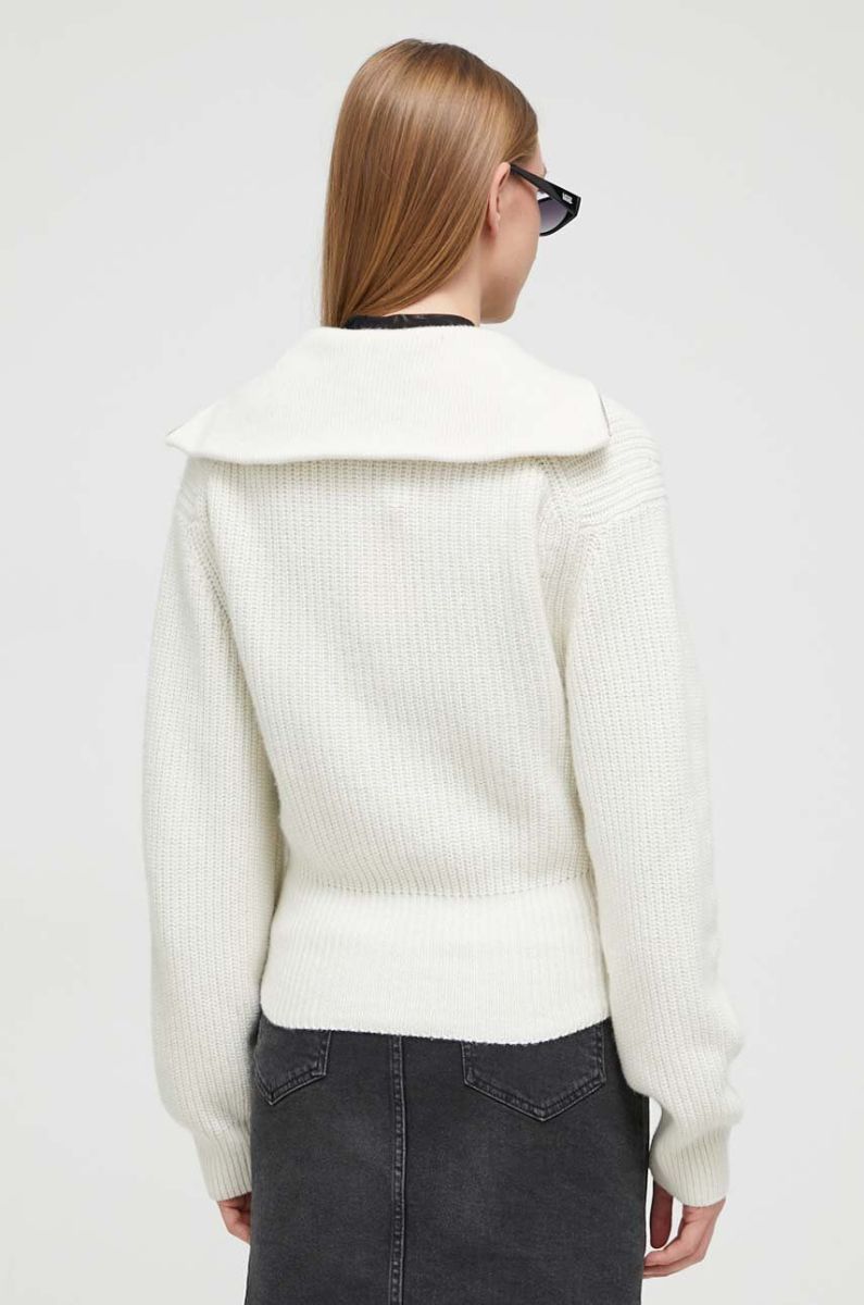 Светр з домішкою вовни HUGO жіночий колір бежевий теплий гольф