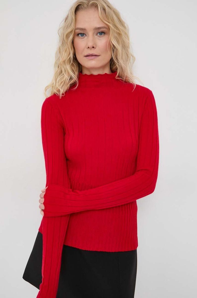 Светр з домішкою вовни MAX&Co. жіночий колір червоний легкий півгольф