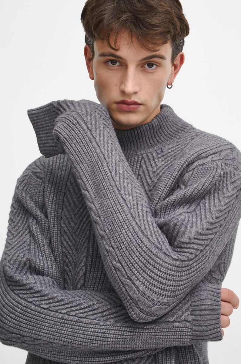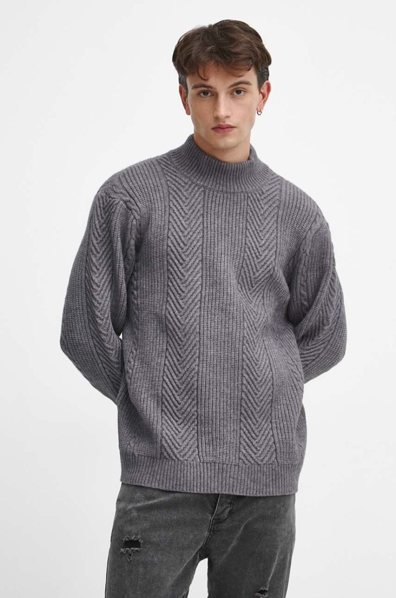 Светр з домішкою вовни Medicine чоловічий колір сірий теплий гольф