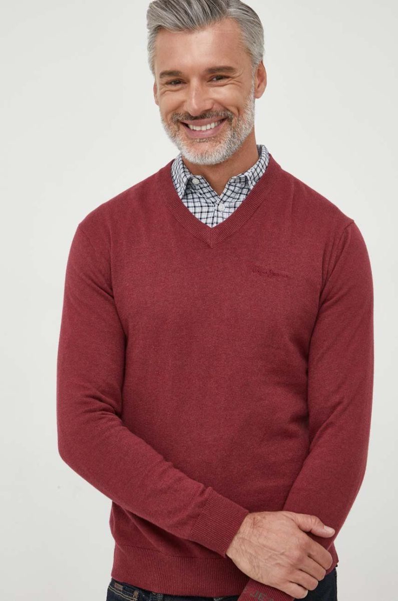 Светр з домішкою вовни Pepe Jeans ANDRE чоловічий колір бордовий легкий