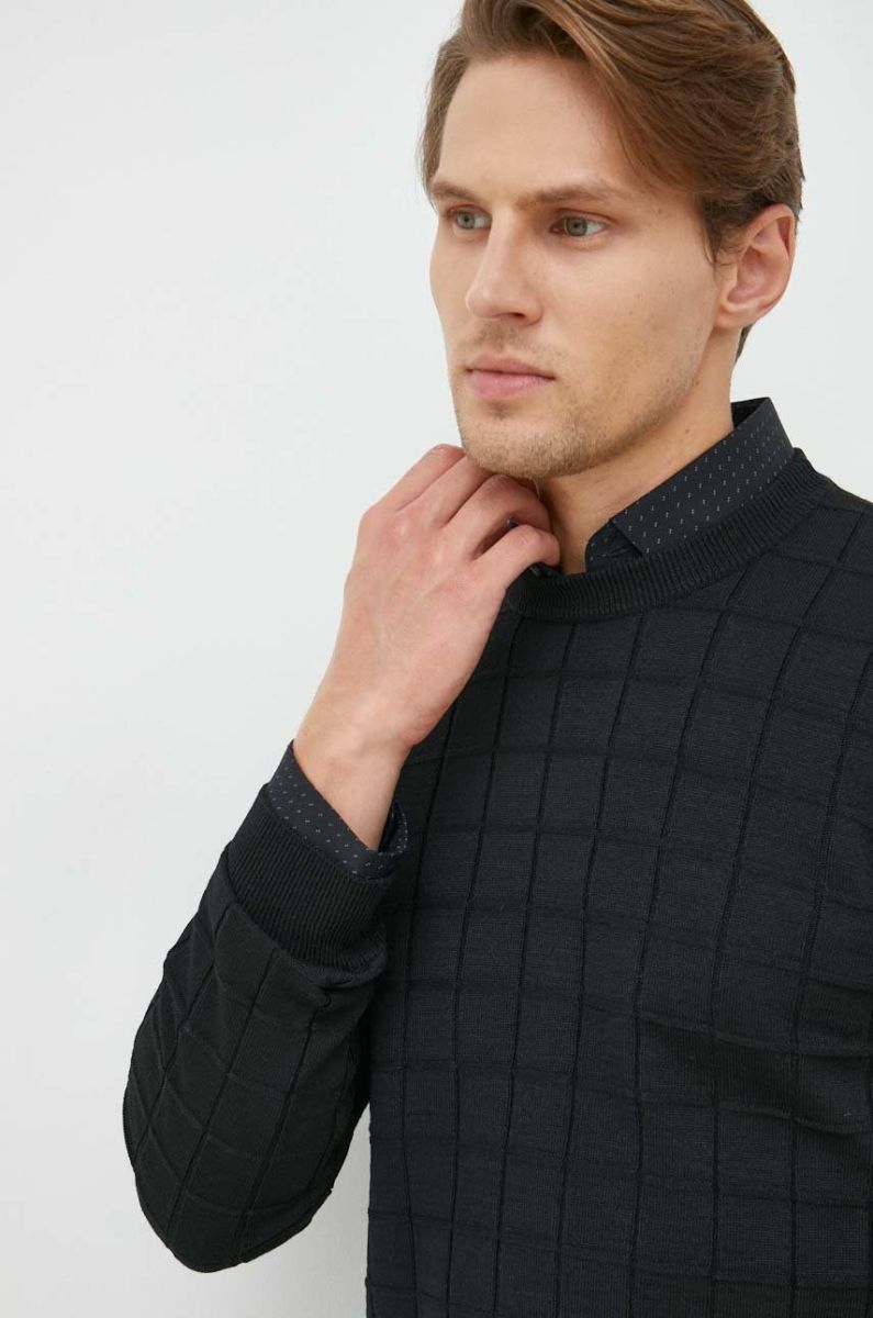 Светр з домішкою вовни Sisley чоловічий колір чорний легкий (2834536)