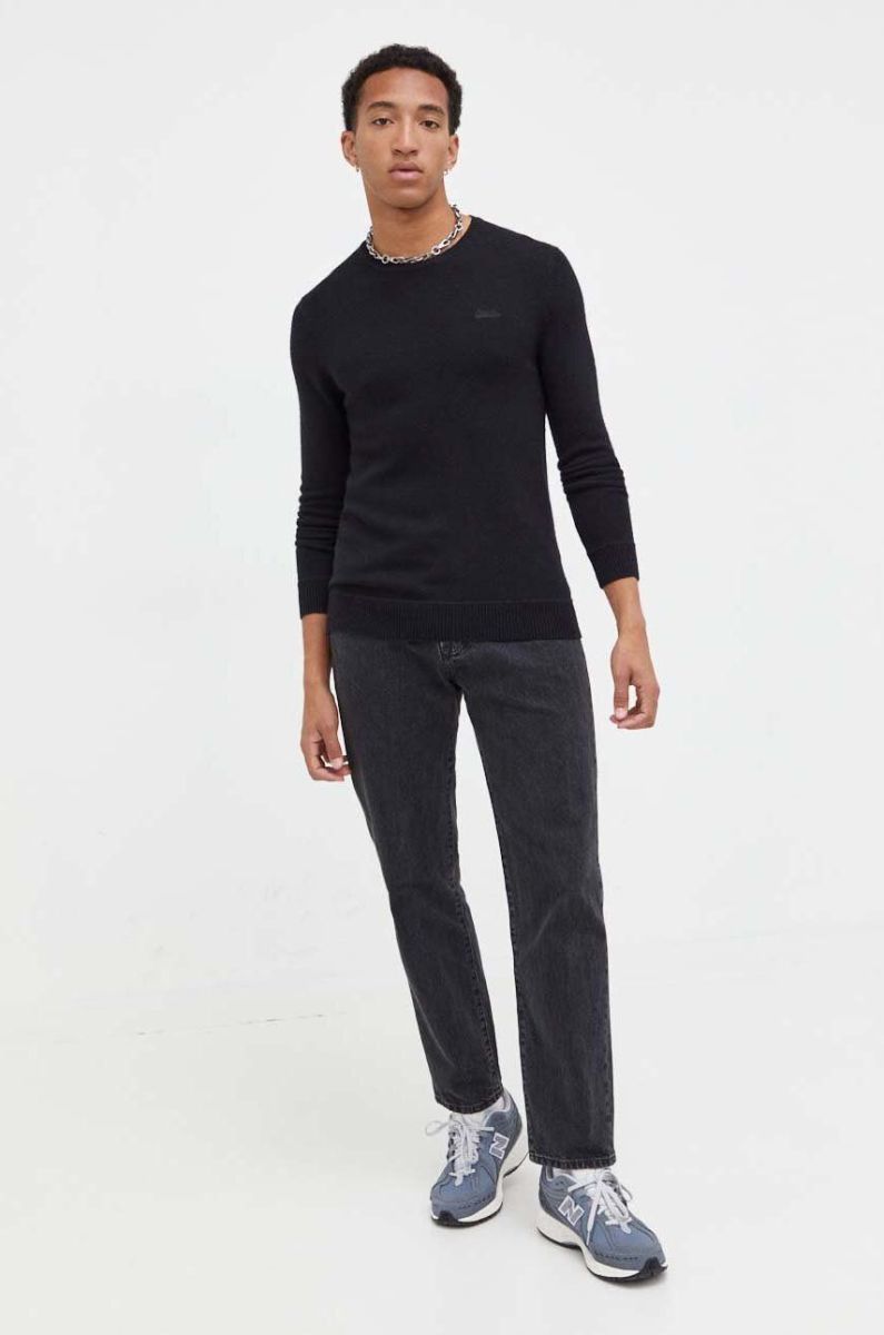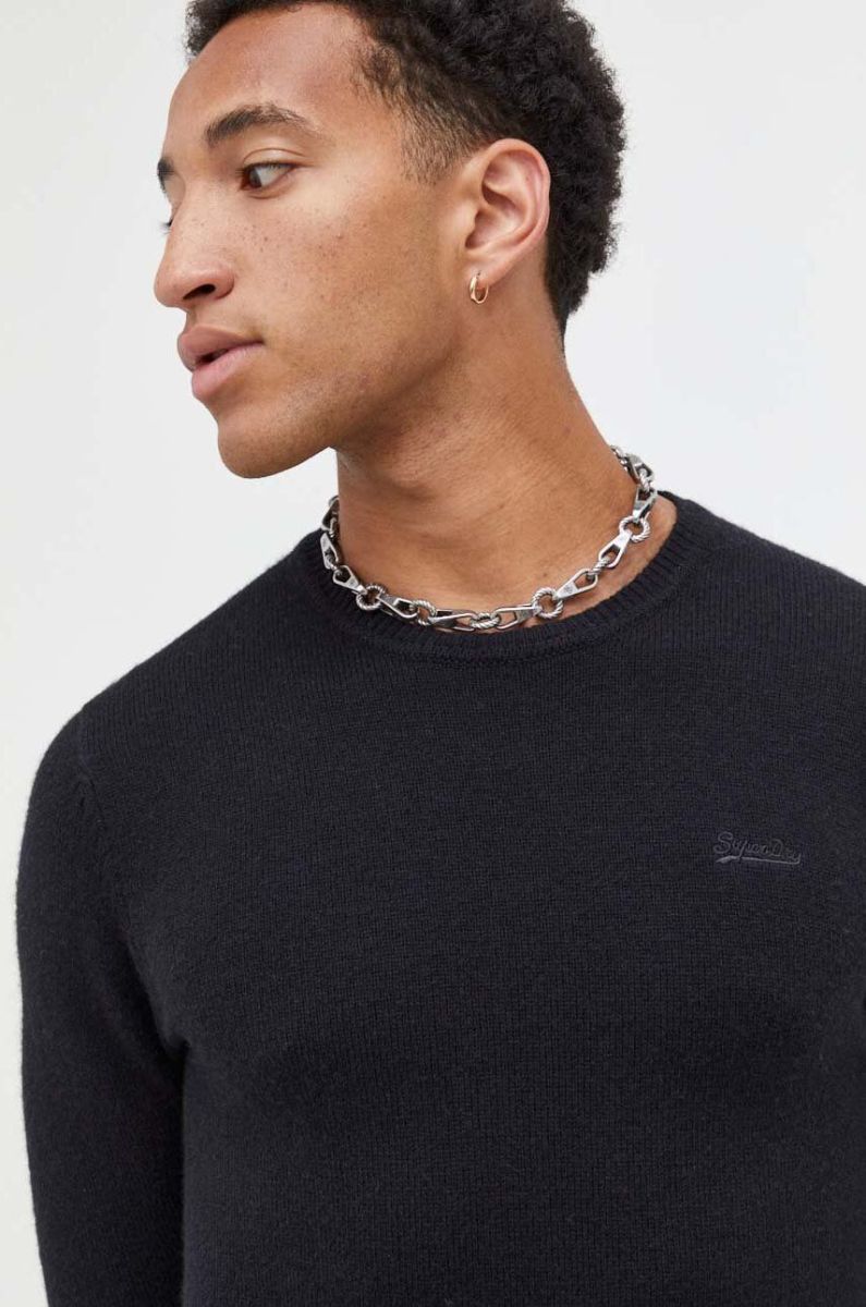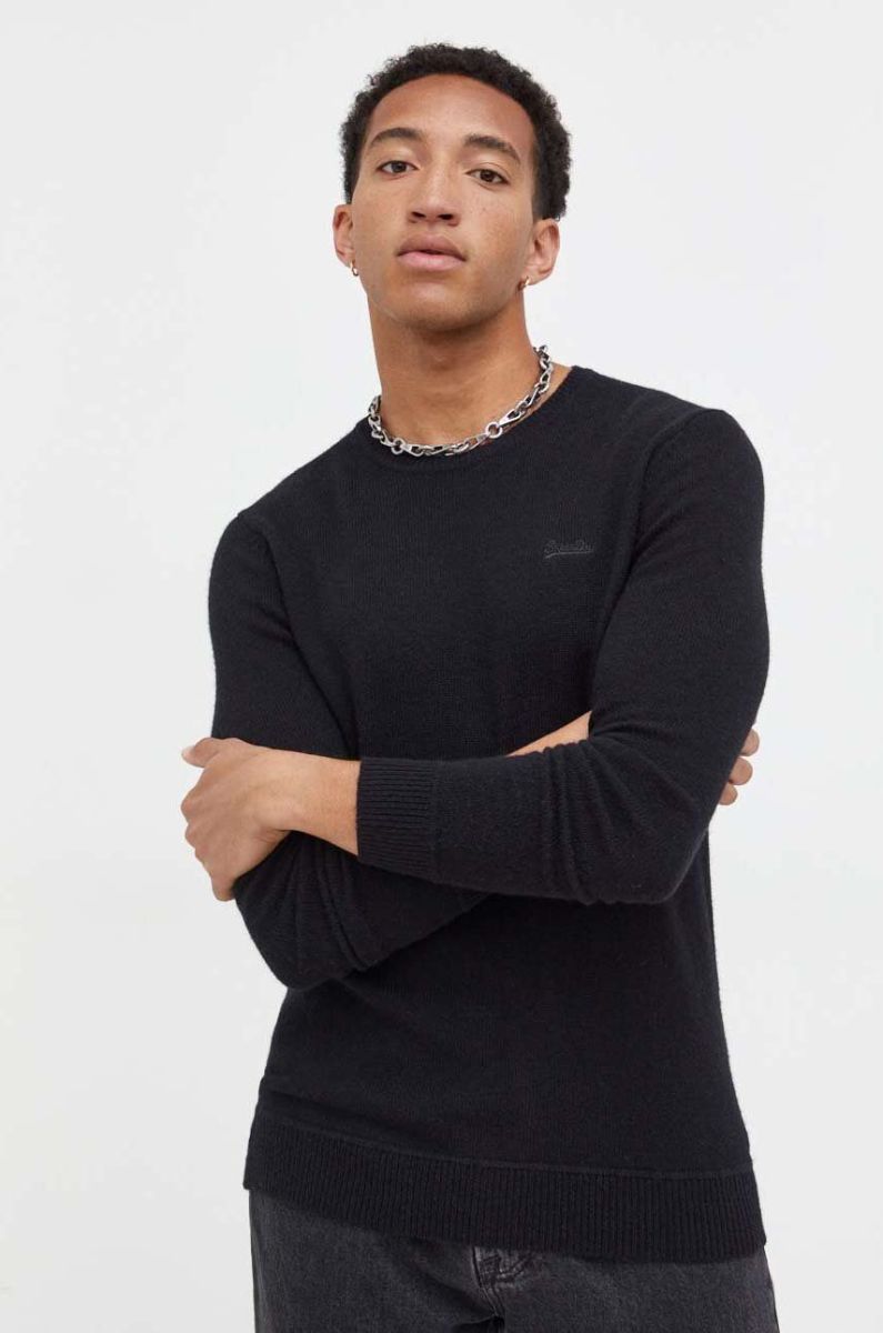 Светр з домішкою вовни Superdry чоловічий колір чорний легкий