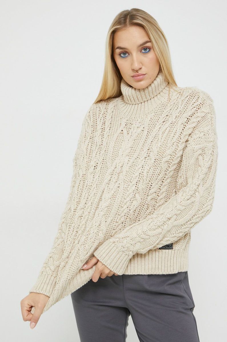 Светр з домішкою вовни Superdry жіночий колір бежевий гольф