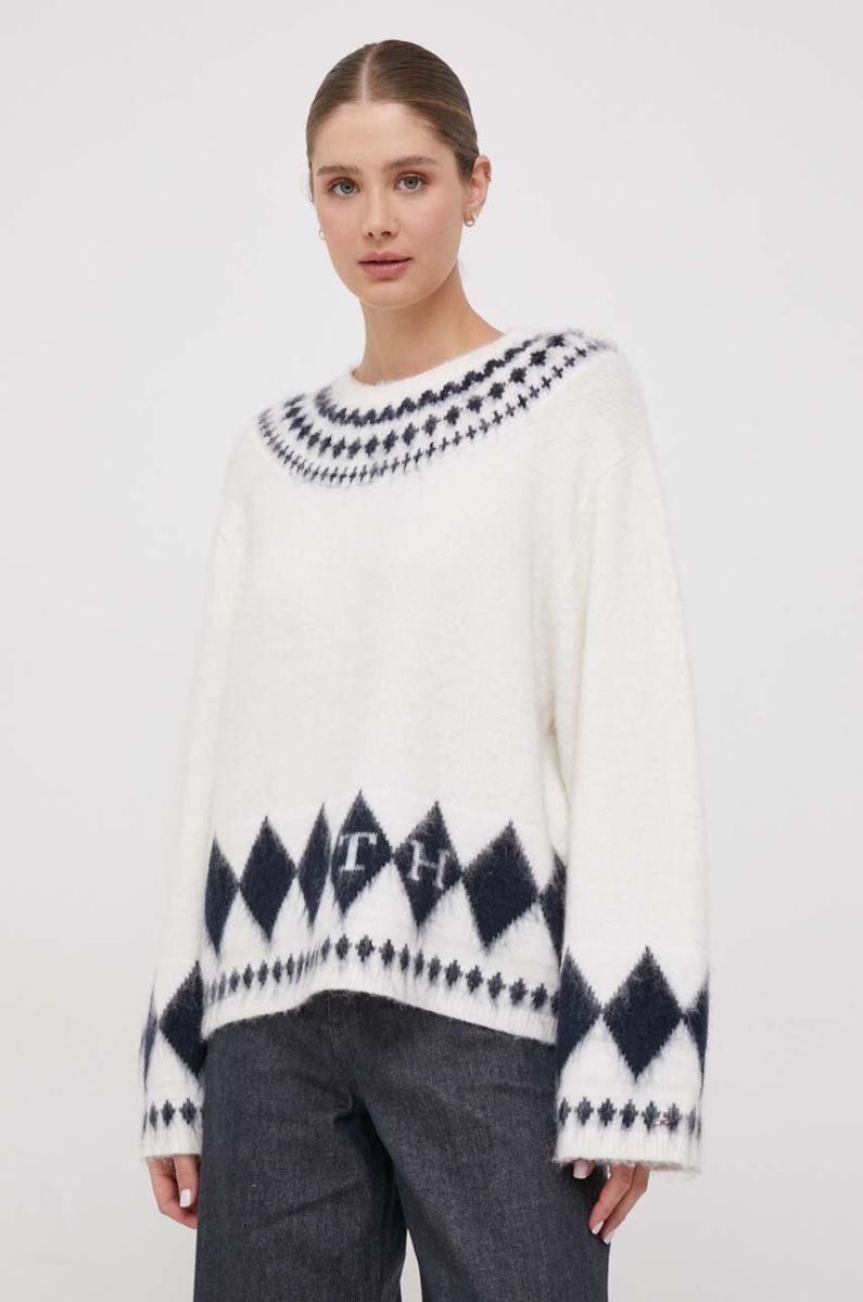 Светр з домішкою вовни Tommy Hilfiger жіночий колір білий теплий