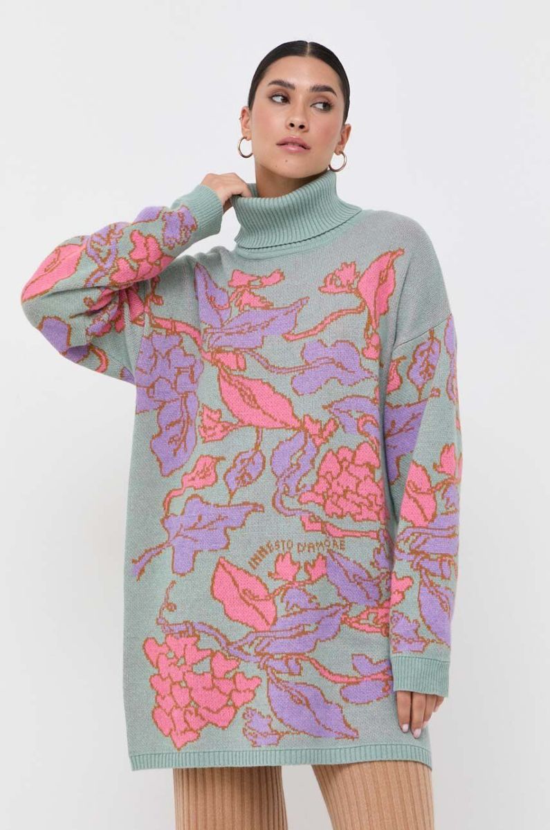Светр з домішкою вовни Twinset жіночий теплий гольф колір барвистий