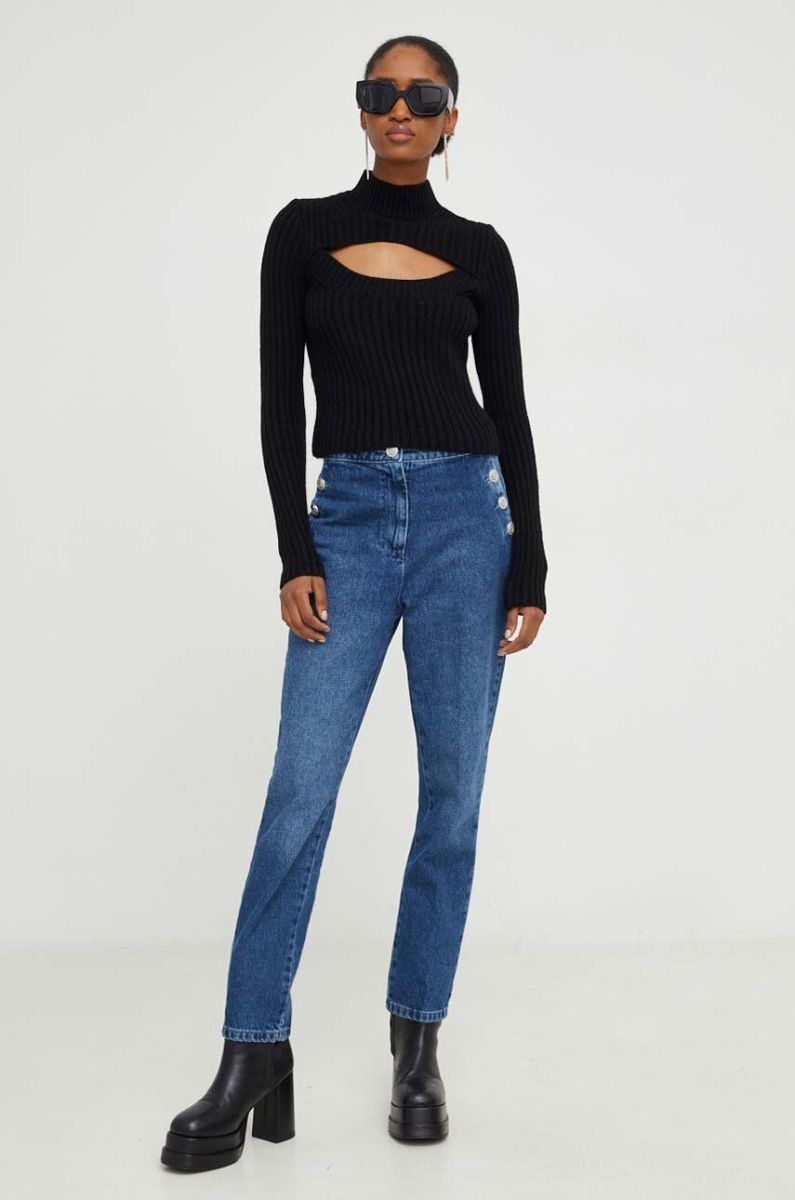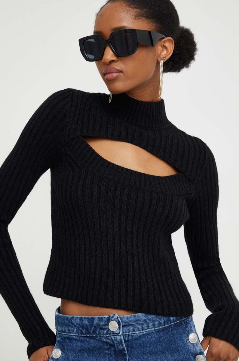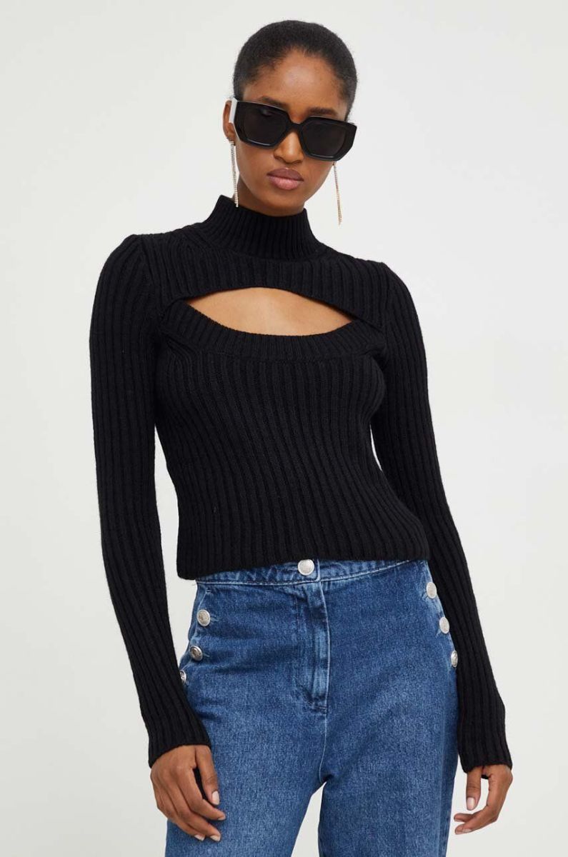 Светр з вовною Answear Lab колір чорний легкий півгольф