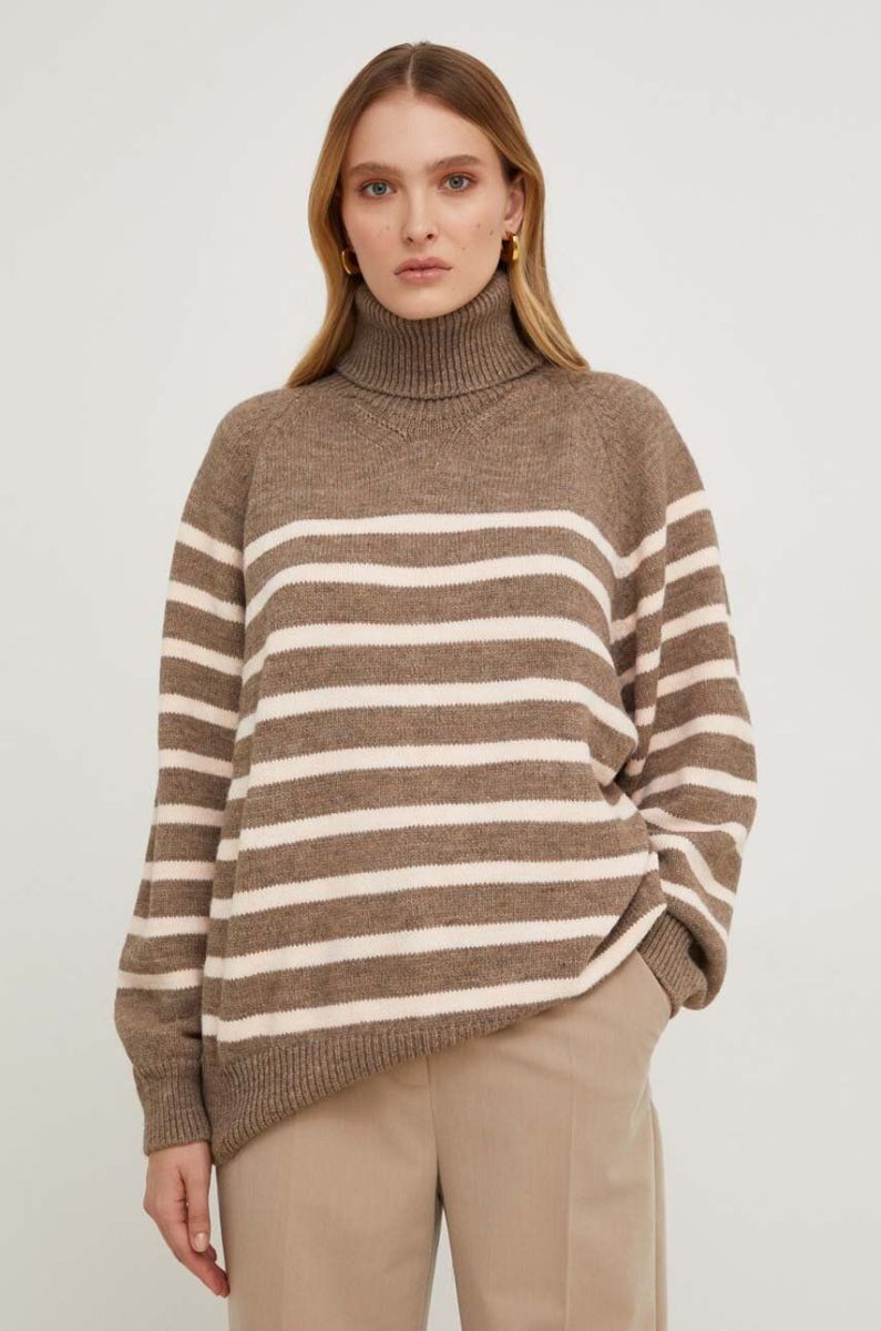 Светр з вовною Answear Lab колір коричневий теплий гольф