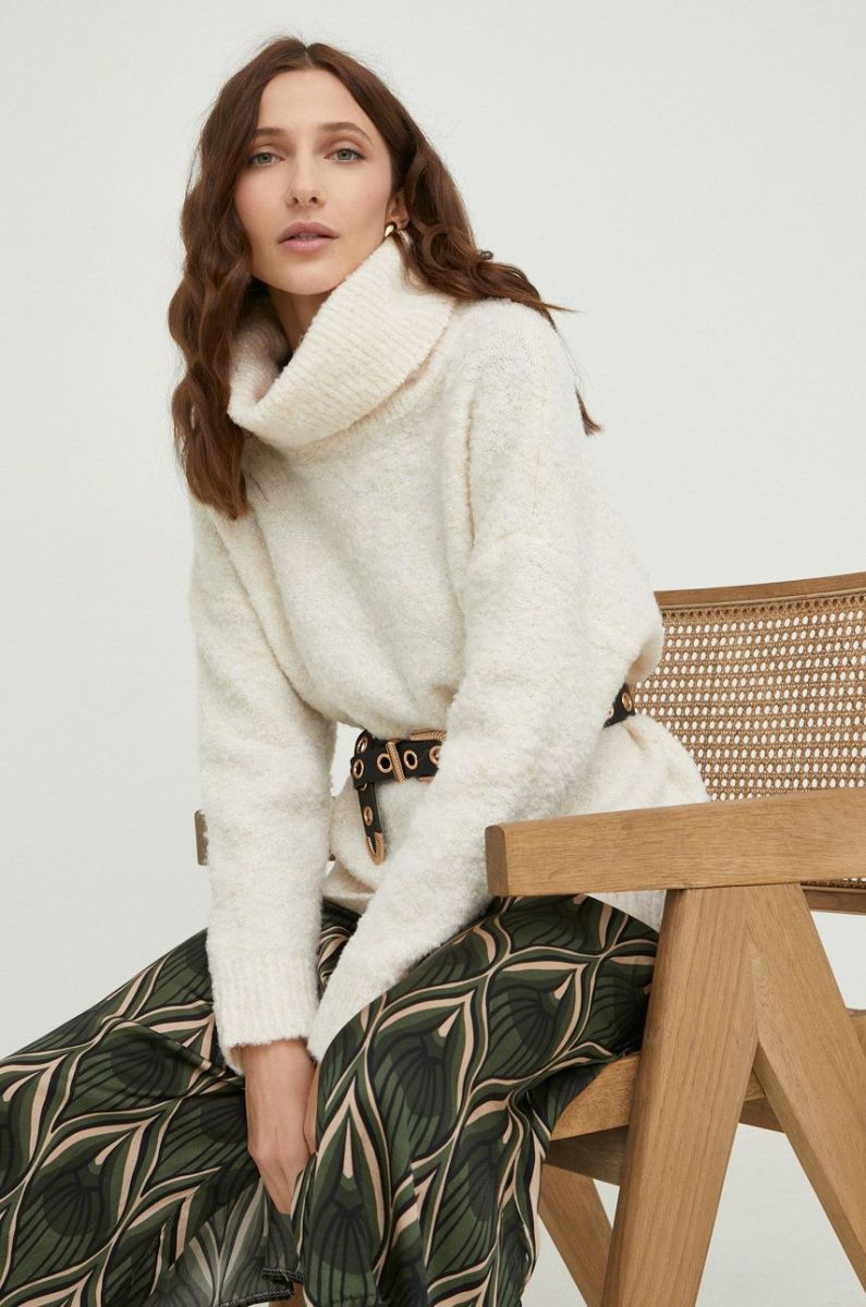 Светр з вовною Answear Lab жіночий колір бежевий теплий гольф